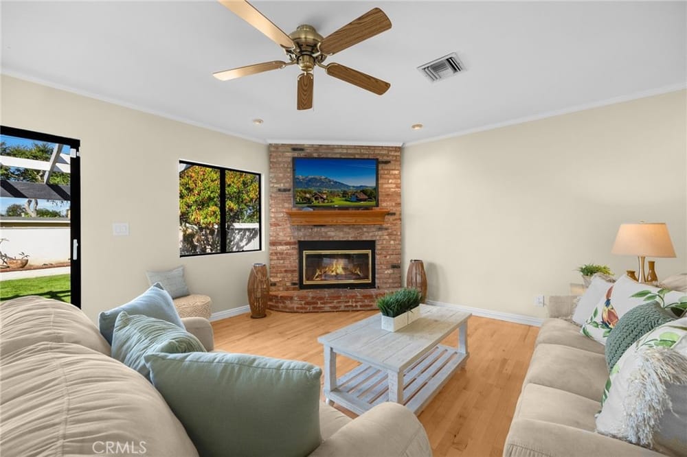 BEAUTIFUL, SINGLE-STORY home in a quiet neighborhood in Fullerton! This home features a bright and open floor plan with 3 bedrooms and 2.5 bathrooms with 1,963 square feet of spacious living space. You are welcomed at the entry into the spacious living room which features a beautiful fireplace with a custom built-in bookcase, recessed lighting and plenty of natural lighting. The beautifully desig...ned kitchen features plenty of cabinetry for storage, granite countertops, stainless steel appliances, a gas range with overhead microwave, breakfast nook, and is open to the family room which makes it great for entertaining. HUGE family room with cozy brick fireplace, plenty of natural lighting, and beautiful views of the backyard. The Primary Bedroom Suite includes a LARGE bedroom area, walk-in closet, and beautiful bathroom with large sink vanity with storage and glass enclosed shower. Additional bedrooms and a beautiful full-sized bathroom down the hall. Private backyard features large patio area with TWO barbeque islands, grassy area, mature landscaping and shed. Additional features of the home include a 2-car garage, beautiful wood flooring throughout, tankless water heater and NO HOA. This home is centrally located and is close to dining, shopping, entertainment and is a short distance to Cal State Fullerton, Fullerton College and downtown Fullerton. Come view this beautiful house and make it yours today!