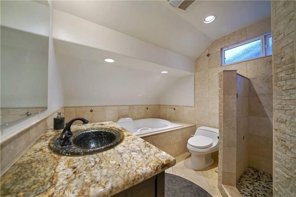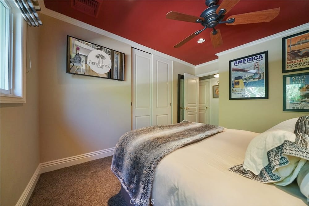 STUNNING GREENBROOK SPACEMAKER 2 DIRECTLY ADJACENT SCENIC PINEWOOD PARK – This spacious SFR (topping 2,900 square feet) offers 4 bedrooms (including a DOWNstairs master) and 3 baths, as well as an enormous bonus room. Lovingly maintained, extensively upgraded and professionally designed over the past 24 years, this home has been fashioned for entertaining. The inviting living room features vaulted... ceilings and a gas fireplace with an Italian marble hearth. The open-concept gourmet kitchen is equipped with premium appliances [Gaggenau (refrigerator, dishwasher), Miele (steam oven), BlueStar (range)], offering both functionality and style.Upstairs, the home features a bedroom, a luxurious spa-style bath with dual showerheads and 2-person Acryline air tub, the bonus room with abundant built-in storage and surround-sound wiring & PSB speakers, and a stocked loft library which includes two desk spaces. The dual-zone HVAC system and whole-house ozone air purifier (American Standard), whole-house fan (The Whole House Fan Co.), and tankless water heater (Navien) with recirculator pump ensure modern comfort and efficiency throughout.The fully-insulated, finished garage is a one-of-a-kind, showcasing Italian thermofoil cabinetry, recessed LED lighting, independent climate control, ample attic storage (with pull-down ladder), and a secondary kitchenette with sink, disposal, dishwasher, washer & dryer, and commercial refrigerator & freezer. Additional touches include undercabinet lighting, projector with electronic drop-down screen, and an insulated 3-panel garage door.The backyard provides a tranquil retreat, with a vegetable garden, mature orange and avocado trees, artificial turf, and a space useful for both quiet relaxation and sizable gatherings. Over the years, this home has been the backdrop for hosting over 100 friends & family throughout the front & back yards, a testament to thoughtful planning and warm ambiance.With its prime parkside location, tasteful updates, and entertainer-friendly layout, this is a rare opportunity to own a truly special home. Seize this chance to make it yours!