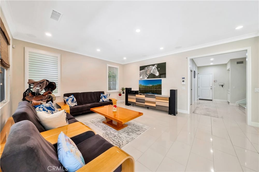 Nestled within the highly sought after community of Orchard Hills in Irvine, this exquisitely updated 3-bedroom, 4-bathroom residence epitomizes modern elegance and comfort. As an added bonus, this model has a 4th room that can double as a bedroom, home office or play area. With a harmonious blend of style and functionality, this home offers a rare combination of versatile living spaces and upscal...e finishes, making it an entertainer's dream and a family haven. Upon entering, you're greeted by a spacious open floor plan that flows seamlessly into the living room and dining areas to the gourmet kitchen. Adorned with sleek, high-end stainless steel appliances, elegant cabinetry, and an expansive center island, the kitchen is a culinary masterpiece, perfect for creating both intimate dinners and grand feasts. Adjacent to the kitchen, large sliding glass doors open to a luxurious California room, providing an effortless transition to indoor-outdoor living—ideal for year-round alfresco dining and relaxing. Upstairs, a generous loft area offers endless possibilities, from a media room to a children's play area or a secondary living space. Each of the three spacious bedrooms is bathed in natural light, with the master suite offering a private retreat complete with a spa-like ensuite bathroom and walk-in closet. Eco-conscious homeowners will appreciate the cutting-edge solar power system and Tesla battery, offering substantial energy savings and peace of mind. The home is also one of the few homes in the community to have the extra long driveway, providing ample parking for guests and family members.The Orchard Hills community enhances this exceptional lifestyle with resort-style amenities, including two sparkling pools, two beautifully maintained parks, and access to scenic walking trails that weave through the serene hills. Conveniently located just minutes from premier shopping centers, top-rated schools, and dining options, this home offers unparalleled access to Irvine’s finest offerings. Experience the pinnacle of luxury living in one of Irvine’s most desirable neighborhoods—this stunning Orchard Hills home is the perfect blend of sophistication, modern convenience, and timeless appeal.