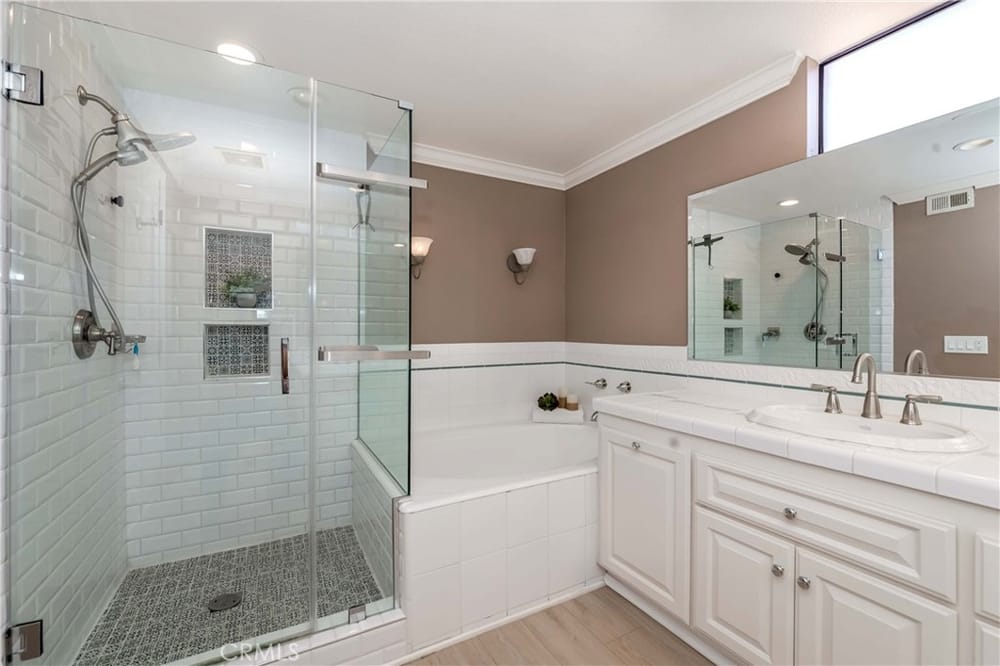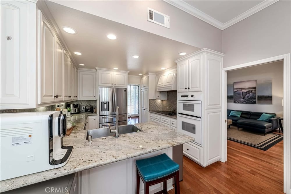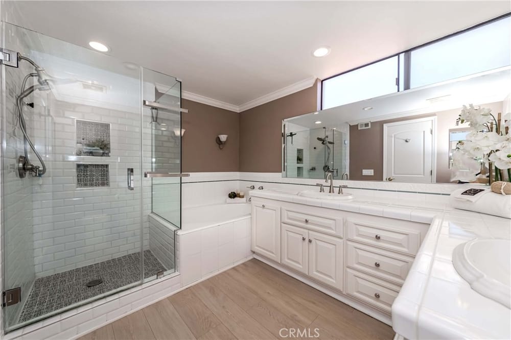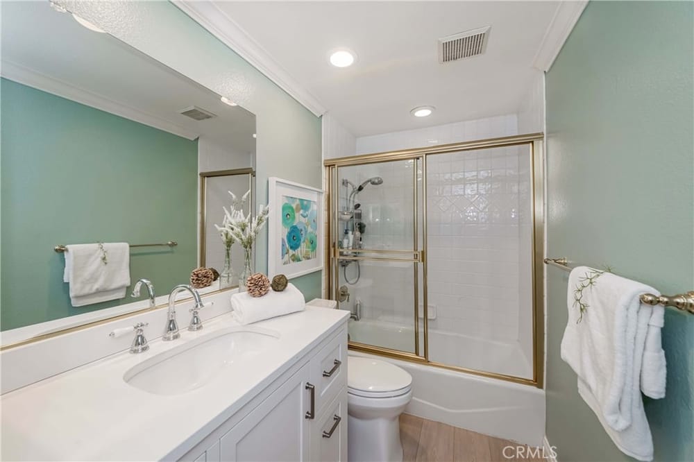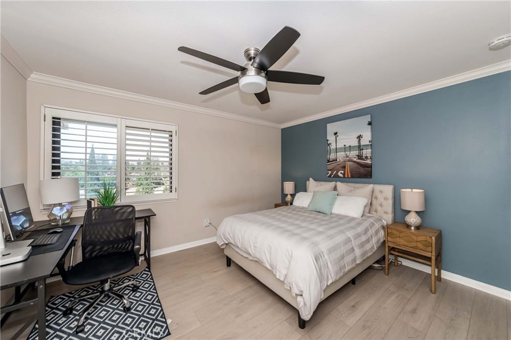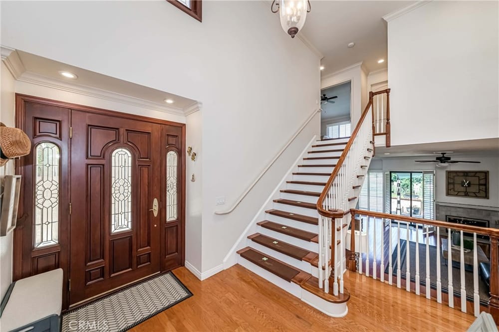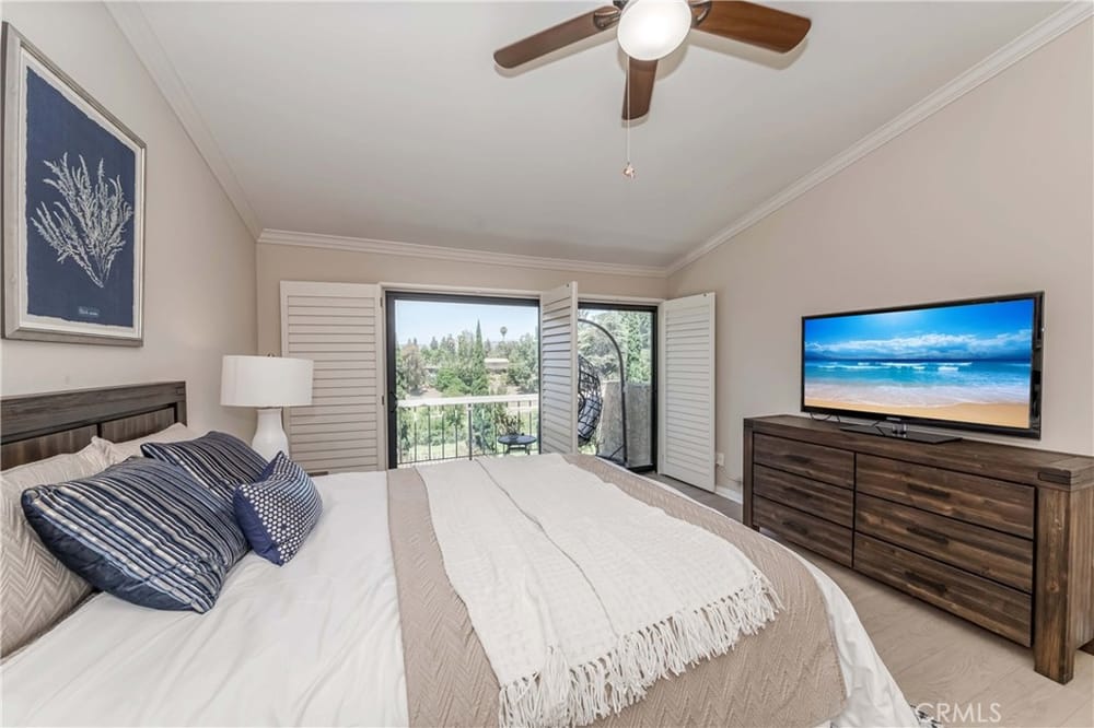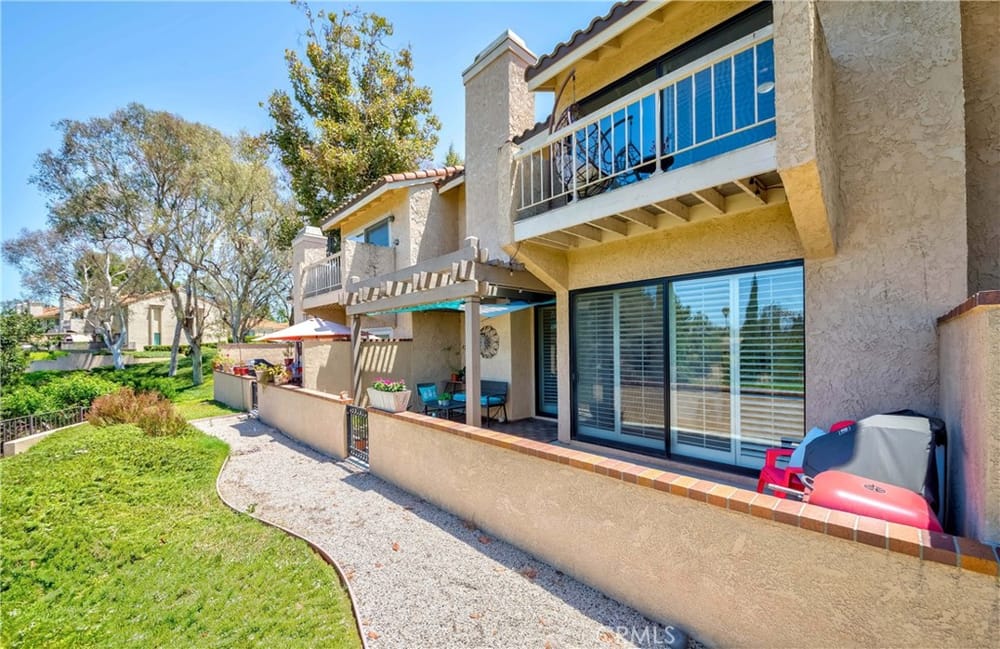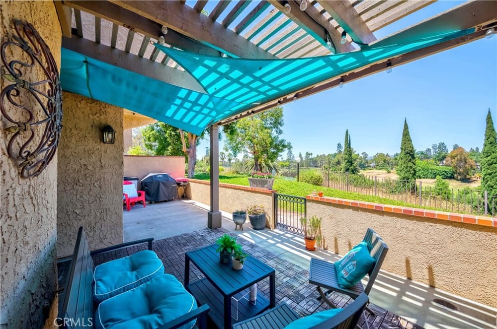 GOLF COURSE LIVING AT ITS FINEST. One of the best locations in 24/7 guard gated Fairway Village, far from street noise and with views of golf course, hills, greenbelts and beautiful woodsy views! Surrounded by lush mature trees and greenbelts translates into a wonderful atmosphere. Very nice development, quiet, relaxing community ambiance; surroundings are very well kept by Association. Lovely spl...it level; three bedrooms and 3 bathrooms. Gated entry with large courtyard; upon entering you will find a perfectly open concept flowing floor plan with abundance of natural sunlight. Grand entry with dramatic cathedral ceiling with skylight. Nice wood flooring downstairs and in stairway. Newer waterproof vinyl flooring throughout upstairs. MAIN FLOOR BEDROOM AND BATHROOM with built-in book shelves and walk-in closet. A few steps down is an upscale living room with upgraded fireplace and sliding door leading to peaceful patio for perfect relaxing and creating the place to entertain your friends and family. Also, formal dining room with large sliding door leading to the rear patio. Updated spacious kitchen with granite countertops & backsplash, newer dishwasher, wine refrigerator and large eating area. Private and elegant primary suite with vaulted ceilings, double mirrored closet doors with organizer, luxurious bathroom (tub & separate shower), dual sinks and sliding door leading to the cozy balcony for enjoying forever GOLF COURSE VIEW. Crown molding, ceiling fans, LED recessed lighting, plantation shutters throughout. All 3 bathrooms have been remodeled/upgraded. Handy inside laundry room. Two-car attached garage with two electric car charging stations. Plenty of the guest parking nearby. The community enjoys resort-like amenities including the vast green spaces and walking trails plus 2 pools and spas, 3 lighted tennis courts, 1/2 basketball court, community RV parking for residents and 24-hour guarded entrance. A wonderfully convenient location close to St. Jude Medical Center, CSUF, Fullerton College, sports complex across the street, access to the Fullerton loop, fine dining, Brea mall (shopping), grocery markets and golf courses. Award-winning Beechwood Elementary/Junior High School attendance area.