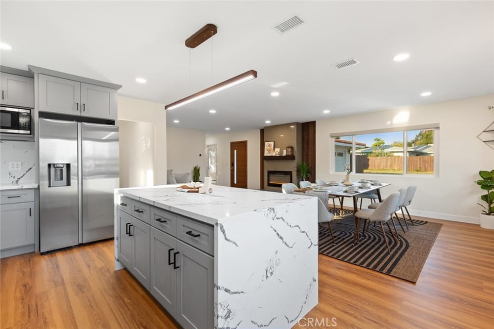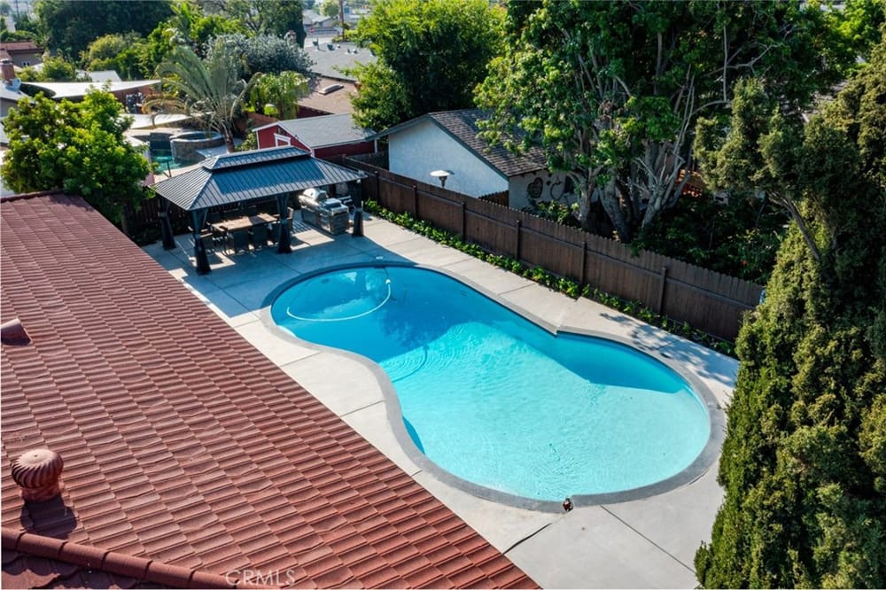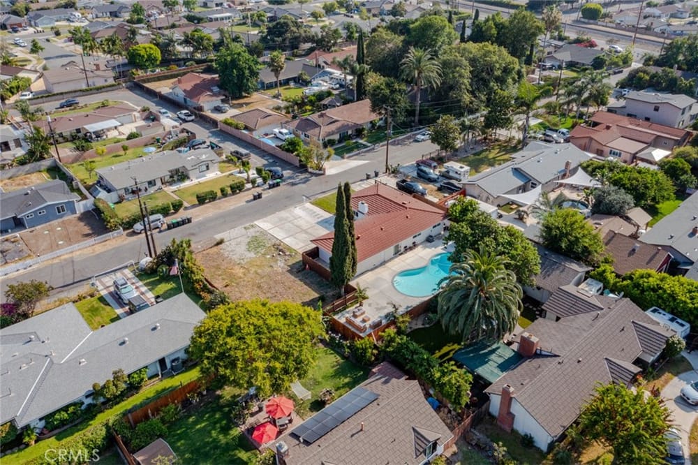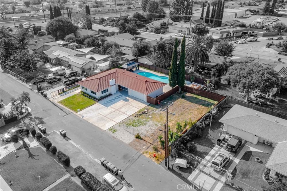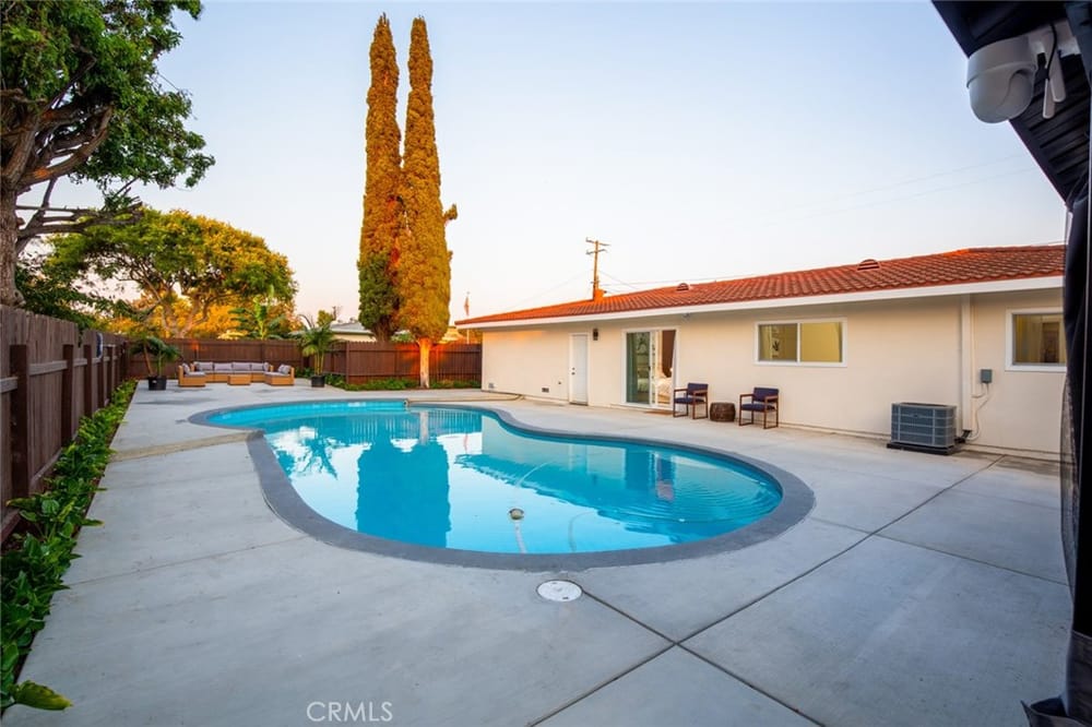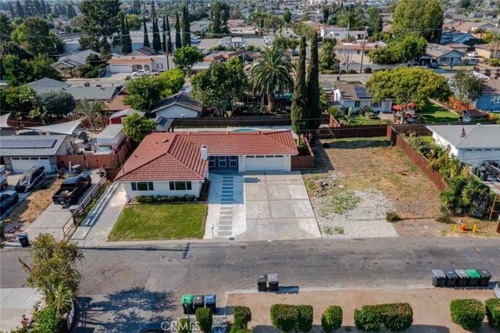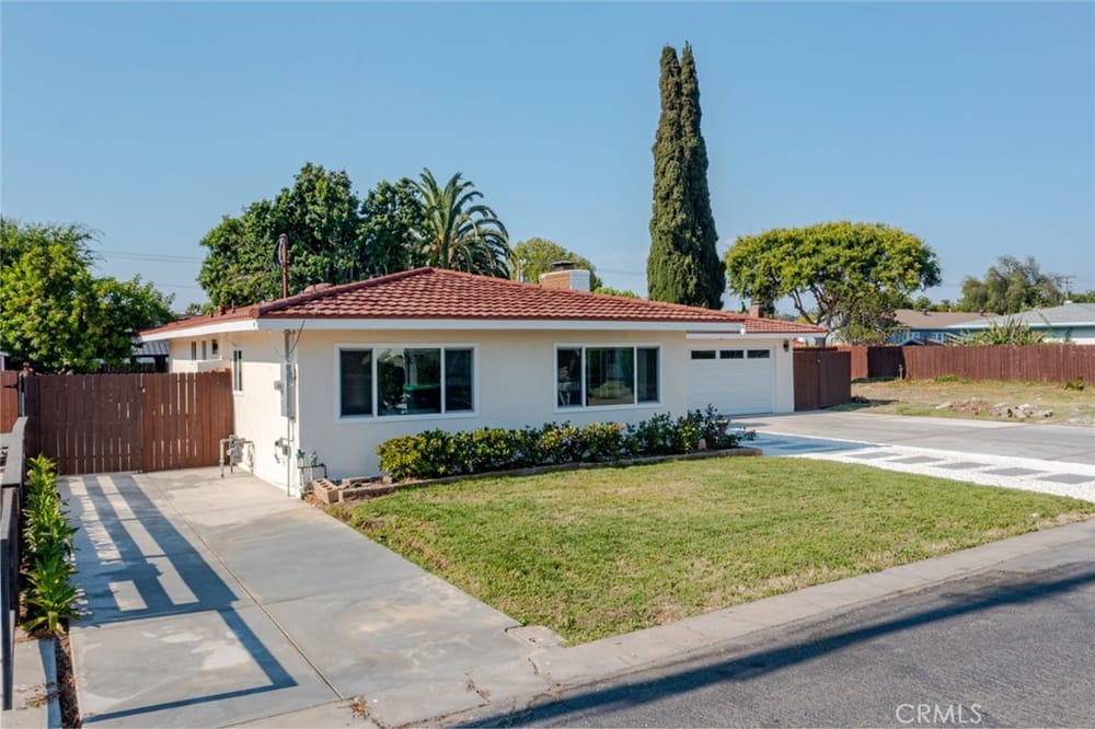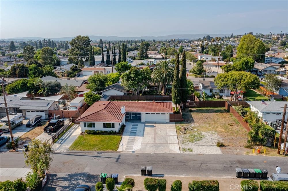 A Must-See Unique Home with Endless Potential! Discover this completely remodeled 3-bedroom, 2-bathroom modern masterpiece in the vibrant city of Orange. Situated in a peaceful and private neighborhood, this beautifully upgraded single-family pool home offers a generous 1,333 sq. ft. of living space on a sprawling 13,340 sq. ft. lot. With the expansive land located right next door, this property a...lso presents a fantastic investment opportunity with approved architectural plans and permits for an 895 sq. ft. ADU along with builder quotes and estimated cost of construction offering excellent future value and potential for rental income. This home has been fully upgraded with new vinyl flooring, double-pane windows, recessed lighting, and fresh interior and exterior paint. As you step inside, you're greeted by an open floor plan filled with natural light from large windows, a cozy fireplace, and a blend of modern and classic design touches. The spacious kitchen, a true entertainer's dream, opens to the living room and features brand-new stainless-steel appliances, quartz countertops, a stunning waterfall island, and ample storage. Whether you're hosting or enjoying a quiet meal, the additional dining area off the living room provides the perfect retreat. Each bedroom is designed with comfort and style in mind, featuring ample closet space, chic mirrors, and modern wall finishes. The bathrooms are thoughtfully renovated with new fixtures, bathtubs, and walk-in showers. The primary suite offers direct access to a tranquil backyard oasis, complete with a recently replastered pool, updated landscaping with modern lighting perfect for outdoor entertaining. Multiple lounging areas around the pool provide sun and shade for year-round enjoyment. Additional highlights include a dedicated laundry room with backyard access, a brand-new central HVAC system, and a two-car garage with a spacious driveway. All new furnishings, both inside and out, are included, making this home move-in ready with immediate style and comfort. Don't miss out on this incredible opportunity to own a home where you can expand! Your ADU, Barn, Expanded Garage, RV Parking, Sports Court or Whichever Creative Space You Choose Awaits You! Ideally located near top-rated schools, Old Towne Orange, Chapman University, with easy access to shopping, Hart Park, and major freeways. Perfect for lifestyle and convenience!