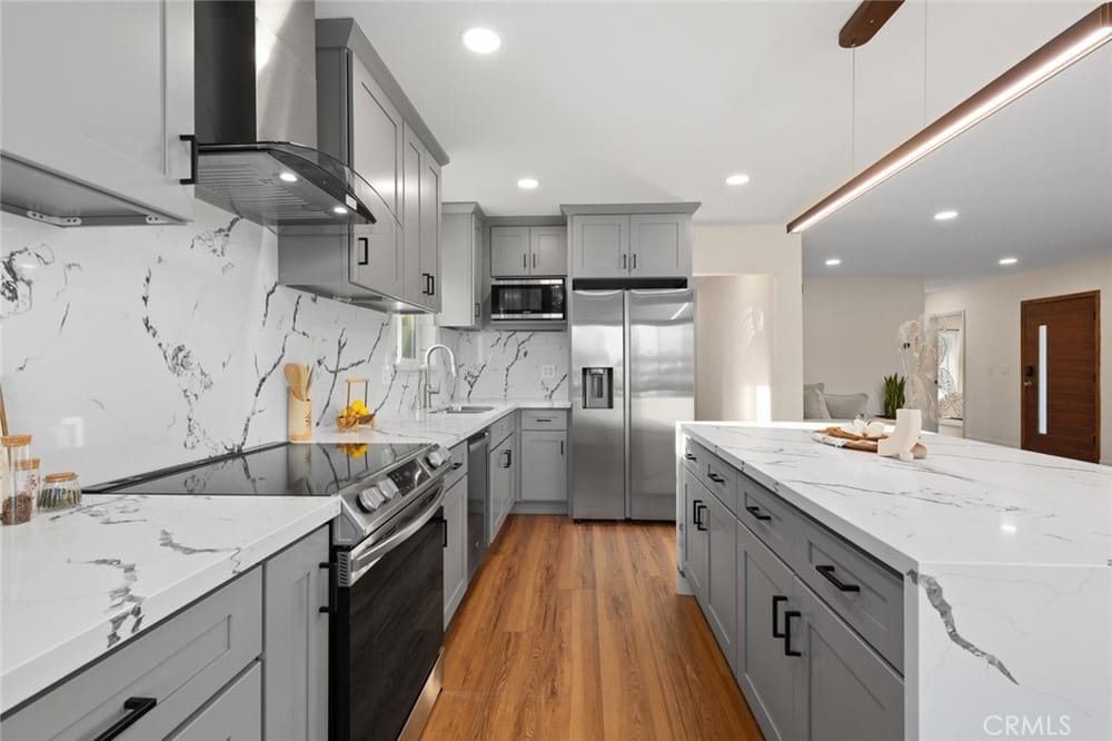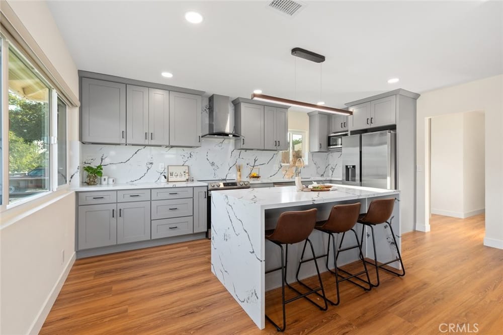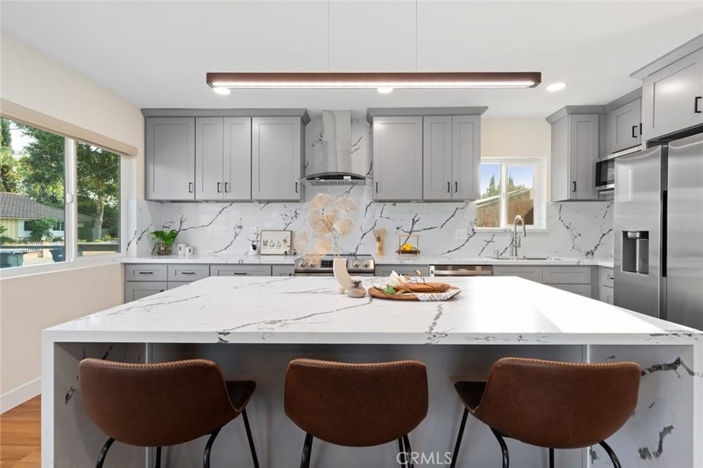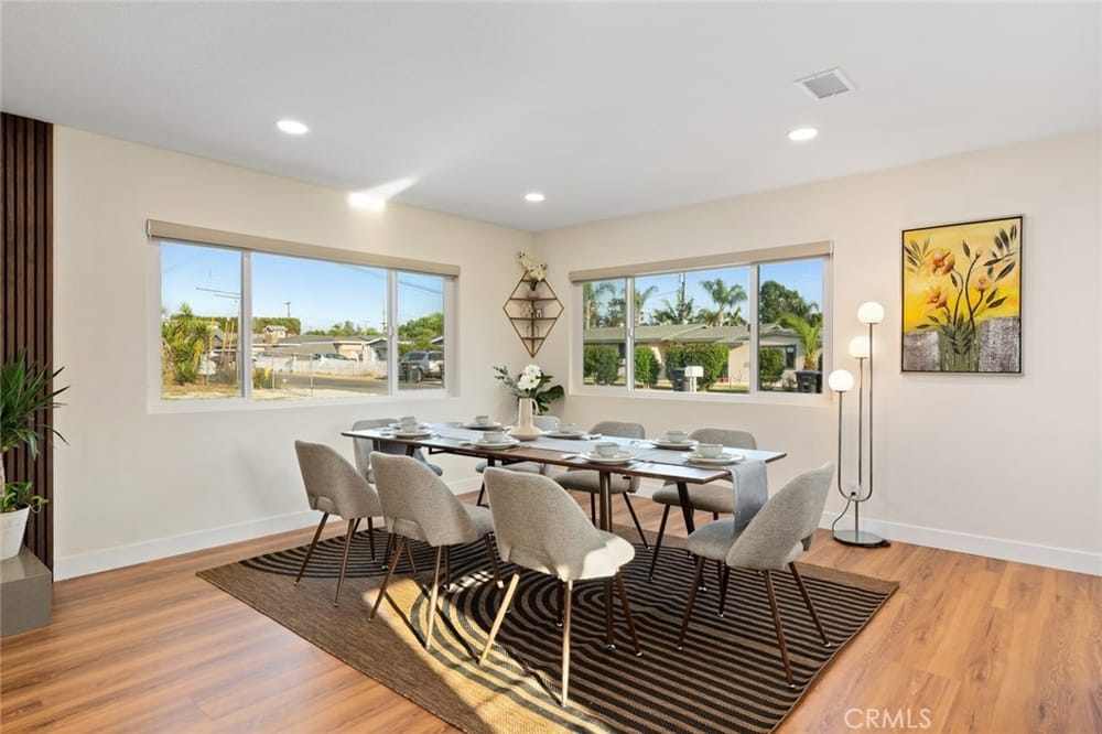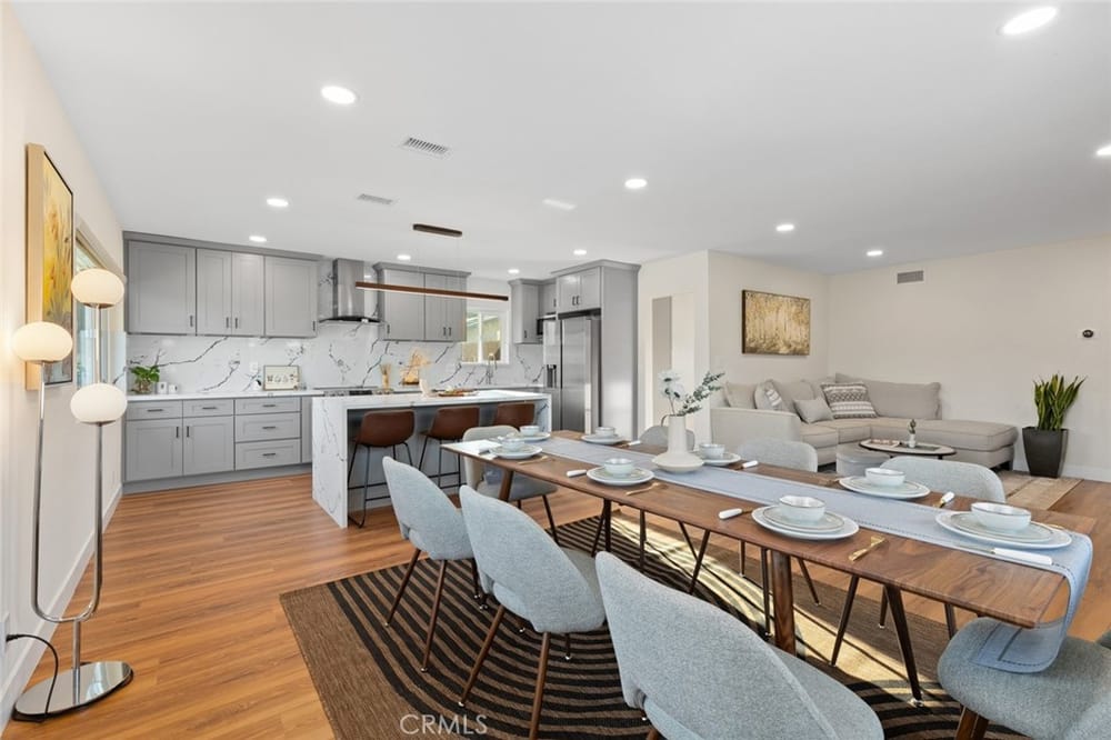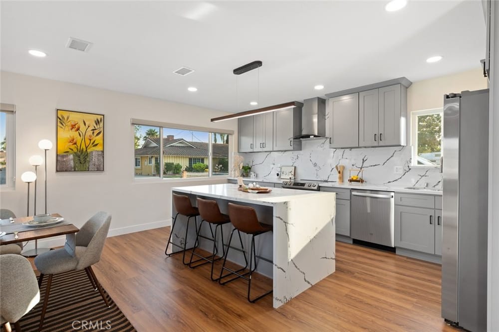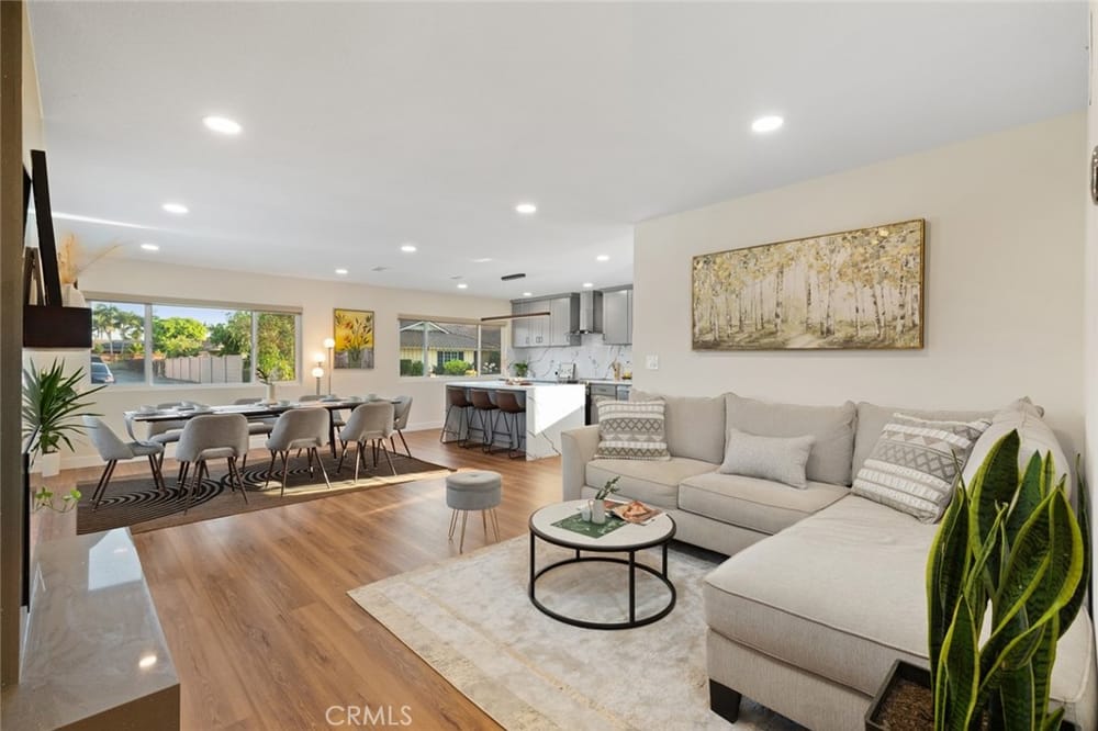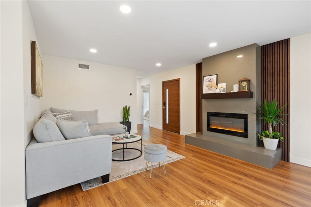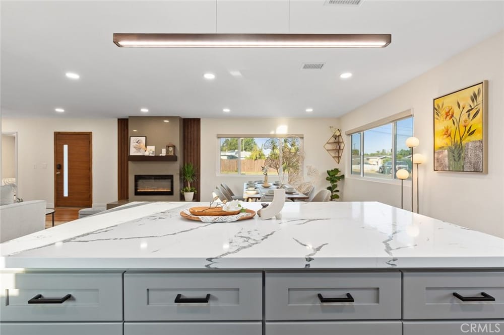 A Must-See Unique Home with Endless Potential! Discover this completely remodeled 3-bedroom, 2-bathroom modern masterpiece in the vibrant city of Orange. Situated in a peaceful and private neighborhood, this beautifully upgraded single-family pool home offers a generous 1,333 sq. ft. of living space on a sprawling 13,340 sq. ft. lot. With the expansive land located right next door, this property a...lso presents a fantastic investment opportunity with approved architectural plans and permits for an 895 sq. ft. ADU along with builder quotes and estimated cost of construction offering excellent future value and potential for rental income. This home has been fully upgraded with new vinyl flooring, double-pane windows, recessed lighting, and fresh interior and exterior paint. As you step inside, you're greeted by an open floor plan filled with natural light from large windows, a cozy fireplace, and a blend of modern and classic design touches. The spacious kitchen, a true entertainer's dream, opens to the living room and features brand-new stainless-steel appliances, quartz countertops, a stunning waterfall island, and ample storage. Whether you're hosting or enjoying a quiet meal, the additional dining area off the living room provides the perfect retreat. Each bedroom is designed with comfort and style in mind, featuring ample closet space, chic mirrors, and modern wall finishes. The bathrooms are thoughtfully renovated with new fixtures, bathtubs, and walk-in showers. The primary suite offers direct access to a tranquil backyard oasis, complete with a recently replastered pool, updated landscaping with modern lighting perfect for outdoor entertaining. Multiple lounging areas around the pool provide sun and shade for year-round enjoyment. Additional highlights include a dedicated laundry room with backyard access, a brand-new central HVAC system, and a two-car garage with a spacious driveway. All new furnishings, both inside and out, are included, making this home move-in ready with immediate style and comfort. Don't miss out on this incredible opportunity to own a home where you can expand! Your ADU, Barn, Expanded Garage, RV Parking, Sports Court or Whichever Creative Space You Choose Awaits You! Ideally located near top-rated schools, Old Towne Orange, Chapman University, with easy access to shopping, Hart Park, and major freeways. Perfect for lifestyle and convenience!