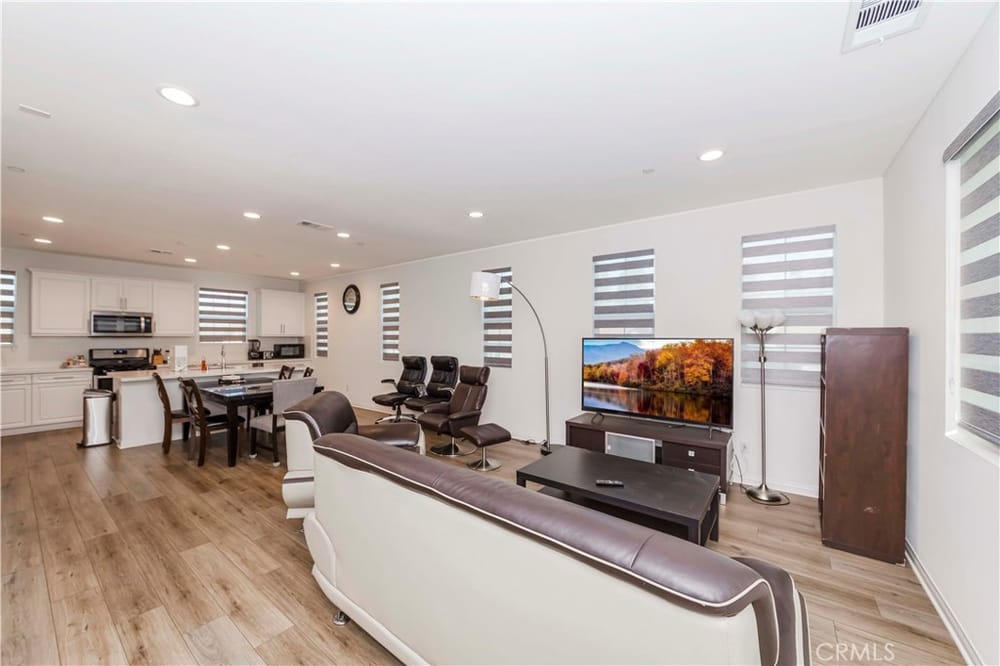 Welcome to 6903 Alderwood Ave, Buena Park! Presenting an exceptional remodeled residence in the highly desirable Magnolia Square community. This unique residence features a spacious 4-bedroom, 3.5-bath floor plan encompassing approximately 1,870 square feet of elegant living space. On the entry level, you’ll find a well-appointed bedroom with an ensuite bath, ideal for guests, as well as direct ac...cess to a 2-car garage with additional storage space. Ascend to the second level to experience the expansive great room, bathed in natural light from abundant windows, and a generous balcony perfect for relaxing. The adjacent dining area flows seamlessly into the recently remodeled kitchen, which boasts quartz countertops, stainless steel appliances, a central island, a walk-in pantry, and stylish modern white cabinetry. A convenient guest half bath is also located on this floor. The top level is dedicated to the serene primary suite, featuring a walk-in closet and a luxurious ensuite bath with dual sinks and a large walk-in shower. Two additional bedrooms on this floor offers ample closet space and share a full bath with dual sinks and a shower over the tub. The upper level also includes a practical laundry area. Community amenities further enhance the appeal of this home, including ample guest parking, lush greenbelts, and an inviting outdoor BBQ area and playground. Centrally located near excellent schools, shopping, dining, parks, and entertainment options, with convenient access to the 5 and 91 freeways, this property presents an outstanding opportunity to own a home in the coveted Magnolia Square community. Don’t miss your chance to experience this remarkable residence!