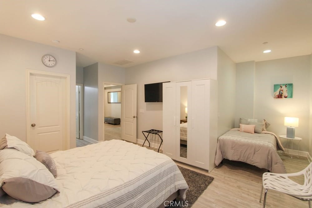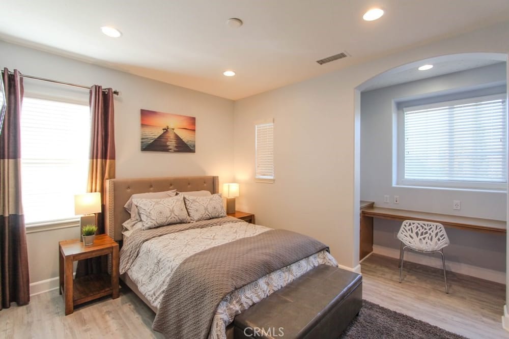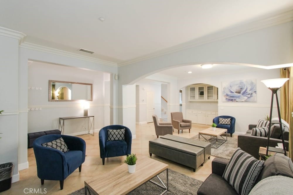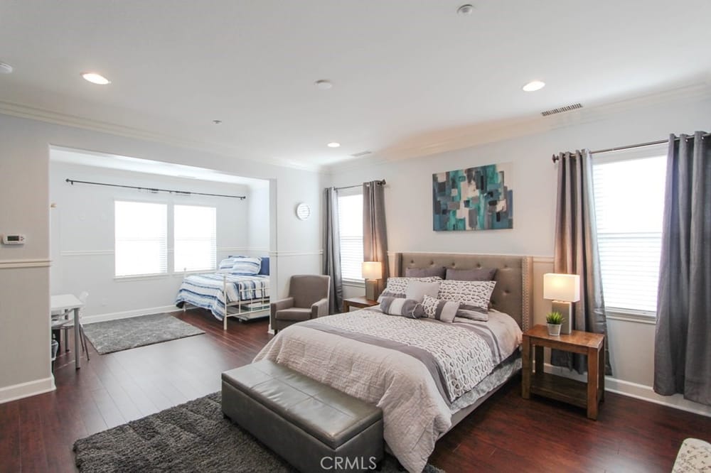This extraordinary French architectural home, built in 2006 by Shea Homes in The Retreat community, exudes elegance and sophistication. Great for multigenerational living or as an investment property. This property has one of the largest lots adjacent to the prestigious and highly desirable Floral Park neighborhood. With 7 bedrooms, 6.5 bathrooms, this stunning residence offers approximately 4,400... sq ft of luxurious living space powered by Paid Off solar panels on an oversized 12,000 sq ft lot, large enough for a pool, located at the end of a private cul-de-sac. Key Features: 6 bedrooms, have their own en-suite bathrooms. The 5th bedroom is an enclosed oversized loft. The 6th bedroom is a garage conversion and the office is being used as a 7th bedroom. Powder room downstairs. Gourmet kitchen with granite countertops, oversized island, stainless steel appliances, 5-burner gas cooktop and dual wall ovens. Spacious primary bedroom with a separate retreat for relaxing, two walk in closets, and an en-suite bathroom with dual sinks, a soaking tub, and a separate shower. Built-in entertainment speaker system with ceiling speakers throughout the house. Dual pane and quadruple windows. Enhanced insulation between floors for added comfort. Third floor bedroom with two large storage closets and hand painted murals. Downstairs laundry room with built-in cabinets. Paid off solar panels. The large rear yard has a 1300 sq ft patio cover for stylish entertaining and an extra-long driveway. This astonishing estate is a must-see. Come experience the charm and elegance of this remarkable estate in a premier neighborhood with LOW HOA dues. This home is centrally located near the 5, 55 and 57 freeways, Chapman University, CHOC Hospital, UCI Hospital, Disneyland, Little Saigon and The Block.