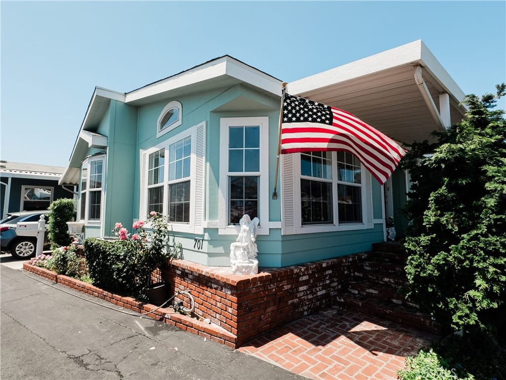 Come experience this beautiful, unique, custom designed 3 bedroom 2 bathroom home in the Rancho La Siesta senior mobile home park. Situated on a large corner lot, this charming home includes a central air conditioner, reverse osmosis water filtration system, a full appliance package, and adorable landscaping. This home also comes with a roof recently replaced with a 50 year warranty, newer exterio...r paint, and all window screens have been replaced. The home also has all brand new flooring throughout. Community Amenities: -Clubhouse:A hub for social activities, gatherings, and community events. -Swimming Pool & Spa: Enjoy a refreshing swim or a relaxing soak in the spa. - Recreational Facilities: Shuffle board, billiards, a library, dog park, and RV parking - Planned Activities: Engage with neighbors through various organized events and activities. Location Highlights: - Close to Shopping & Dining: Conveniently located near a variety of shopping centers, restaurants, and local services. - Healthcare: Easy access to medical facilities and pharmacies. - Beach Proximity: Just a short drive to the beautiful beaches of Orange County, perfect for enjoying the coastal lifestyle. - Parks & Recreation: Nearby parks offer additional recreational opportunities and green spaces. This 2003 Bayshore manufactured home in Rancho La Siesta is a rare find, offering modern comforts in a vibrant senior community. Don't miss out on the chance to make this exceptional property your new home. Schedule a viewing today and discover all that this wonderful home and community have to offer!