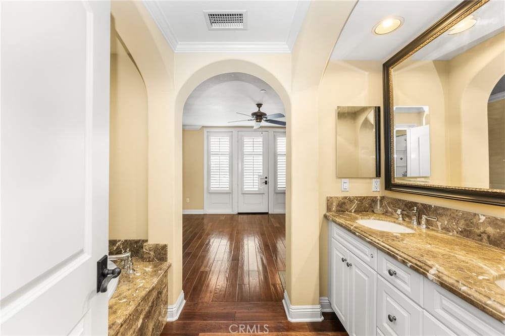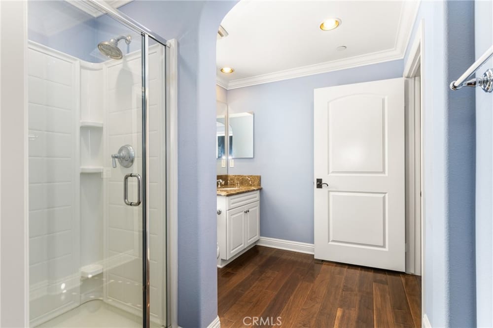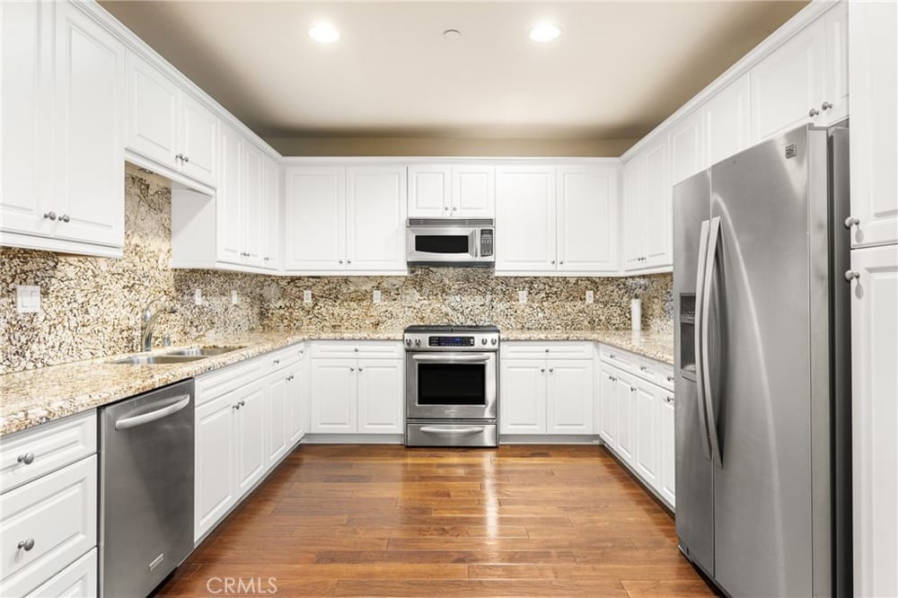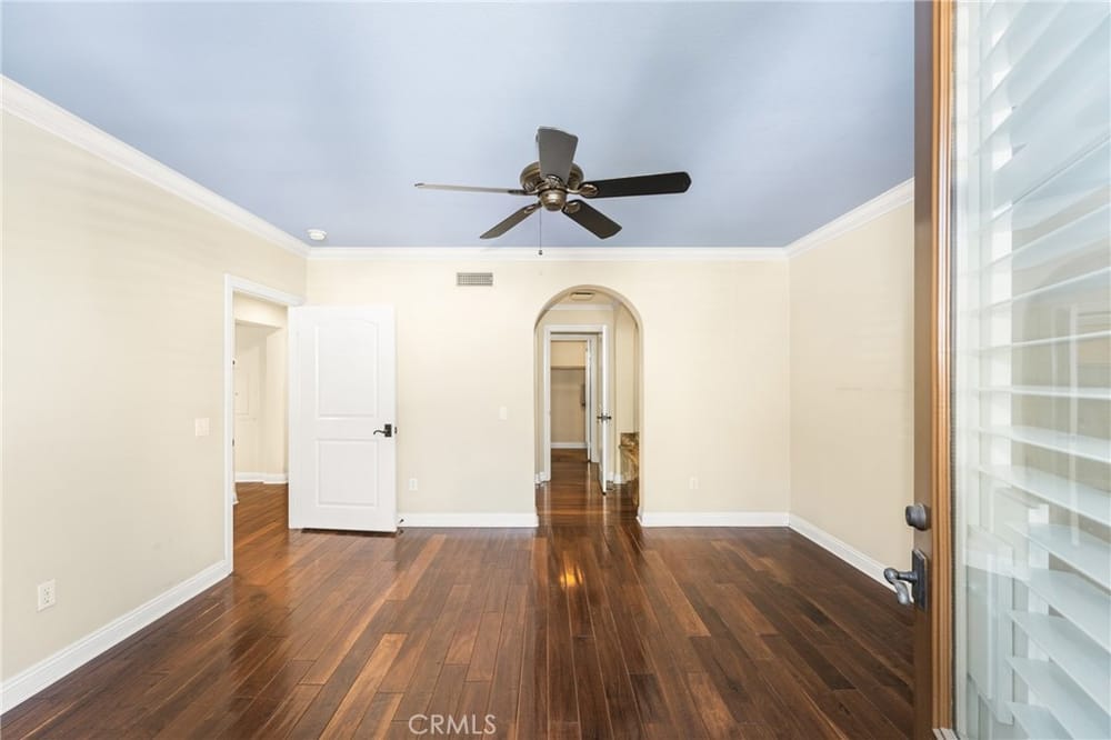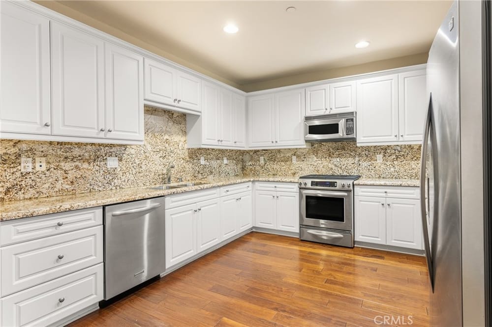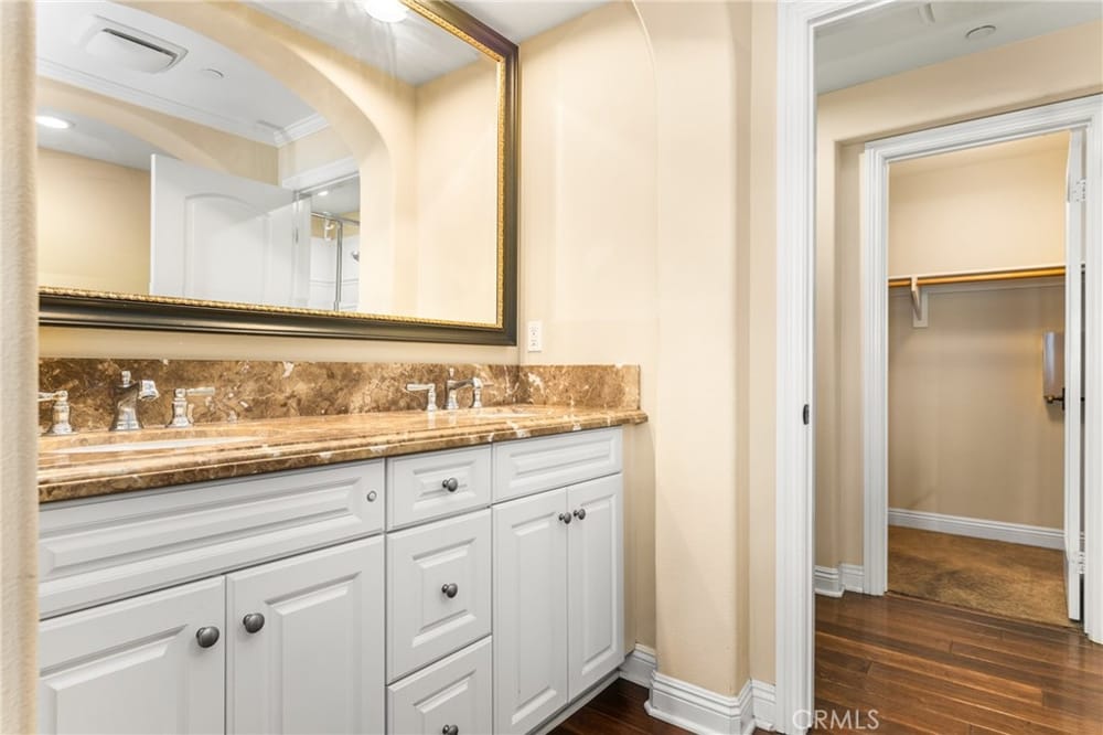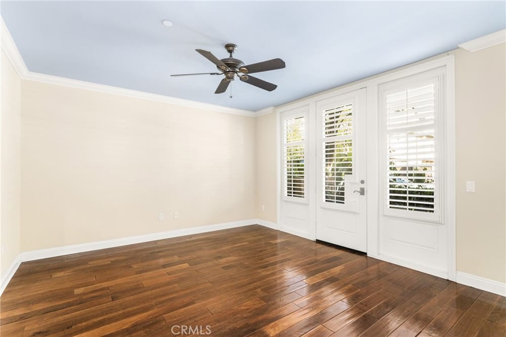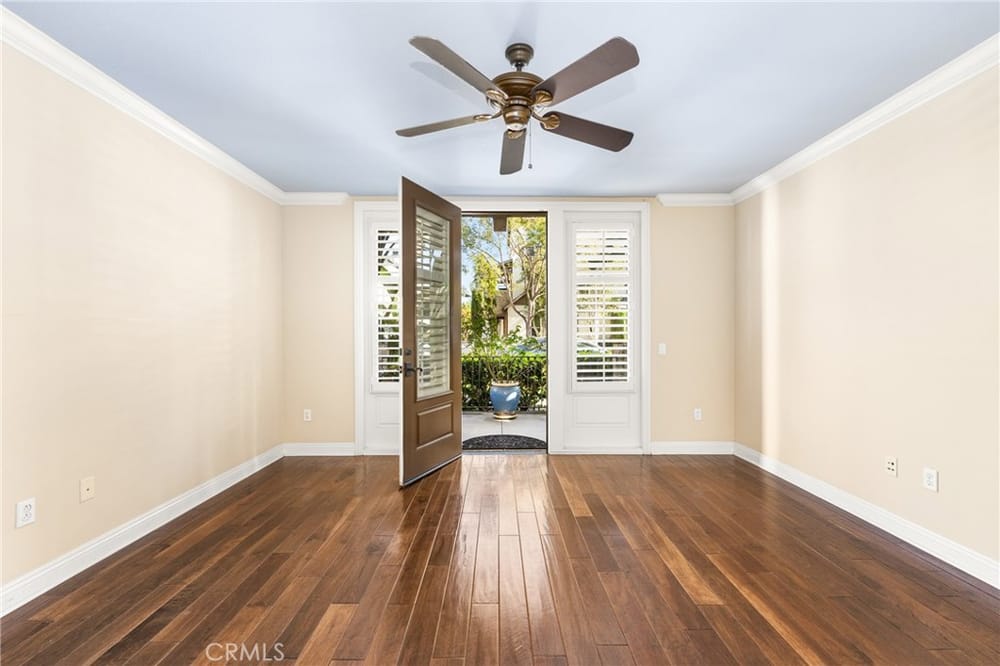 Welcome to Colony Park Resort Community in The Historic Colony Park District where you can enjoy a community that has so many wonderful amenities. This lower-level end unit with an open floor plan offers 2 spacious bedrooms and 2 baths. Beautifully upgraded with rich wood flooring, custom color paint, crown molding, and tasteful décor. The Gourmet kitchen offers white cabinetry, granite counterto...ps with full back splash and stainless-steel appliances. The spacious primary bedroom with private patio and bathroom with dual vanities, separate shower and large soaking tub and huge walk-in closet offer a luxury style feeling. The guest bedroom has direct access to a private bathroom. Convenient inside laundry area and direct access to the oversized two car garage. Other great amenities included ceil fans, crown molding, custom shutters and tankless water heater. The community offers 3 resort style pools, with a covered pavilion, BBQ and firepit areas, exercise room, playground, dog park and additional green belt areas. All this is located close to fabulous restaurants, shopping, trending boutiques, art museums, nightlife and Historic Downtown Anaheim and Famous Anaheim Packing House.