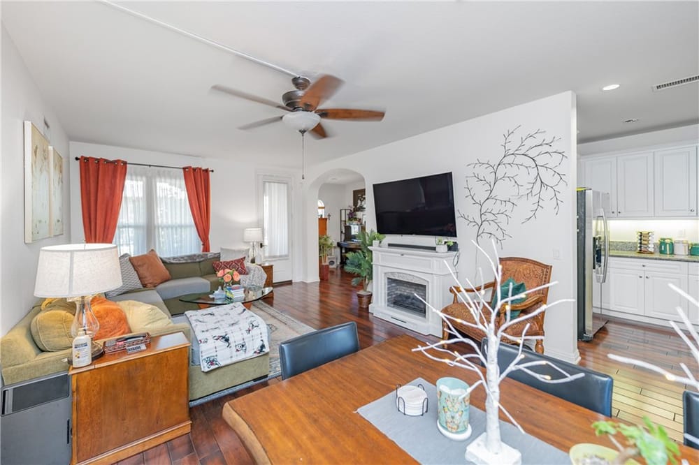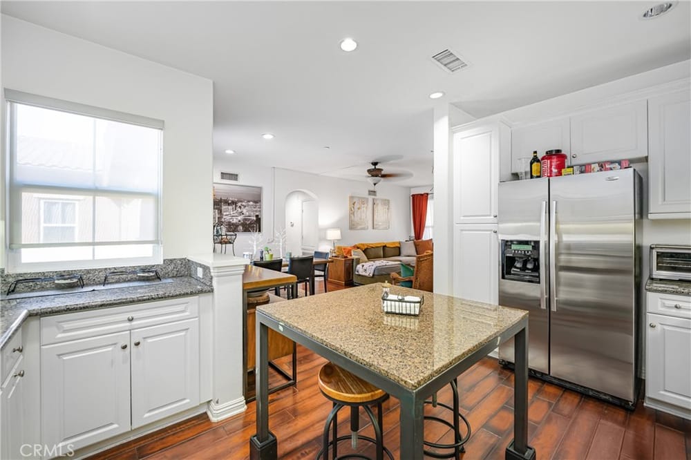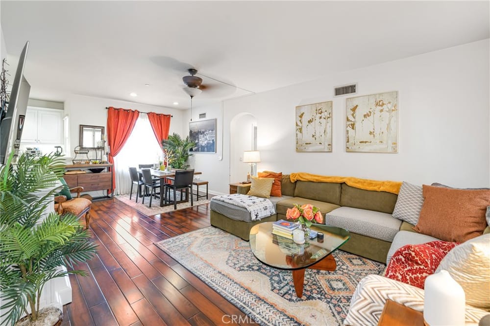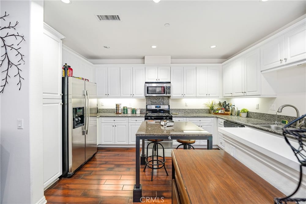 VIDEO TOUR AVAILABLE ON LISTING AGENTS WEBSITE & SOCIAL MEDIA | Welcome to Colony Park - your oasis of resort-style living meets modern convenience in the heart of Downtown Anaheim! This stunning 3-story condo, built in 2008, offers 2,031 square feet of spacious, contemporary living with 3 bedrooms, 3.5 bathrooms, and a two-car attached garage with additional storage space.Step inside to a formal ...entryway that flows into the expansive main floor, featuring a fully renovated interior with hardwood flooring throughout, an investment of over $45,000. The open floor plan is perfect for entertaining, with a modern kitchen that boasts upgraded Whirlpool stainless steel appliances, an eat-at island, and abundant counter space. Step out onto the private balcony, where you can enjoy meals al fresco while taking in peaceful tree-lined views.Adjacent to the kitchen is a dining area, and down the hall, you'll find a built-in desk area, ideal for a home office setup for remote work. The main floor also features a separate laundry room with a washer and dryer, purchased new in 2016, and a convenient half bath for guests. Two generously sized guest rooms, each with its own en suite bathroom, provide comfort and privacy.On the third floor, the master suite awaits—a true retreat with an oversized soaking tub, separate shower with a newly installed $2,500 glass door, and dual sinks. You'll also enjoy the added luxury of a new water softener system, installed in 2023 at a cost of over $12,000.Colony Park offers exceptional amenities, including three large heated pools, three clubhouses, three jacuzzis, an exercise room, and beautifully landscaped parks. All of this comes with a low HOA fee of just $250.73 per month. Located just two blocks from the Anaheim Packing House and Packing District, you'll have easy access to local eateries, breweries, wine bars, and the vibrant community events hosted at Center Street Promenade.This meticulously maintained home offers both luxury and convenience—don't miss out on this rare opportunity!