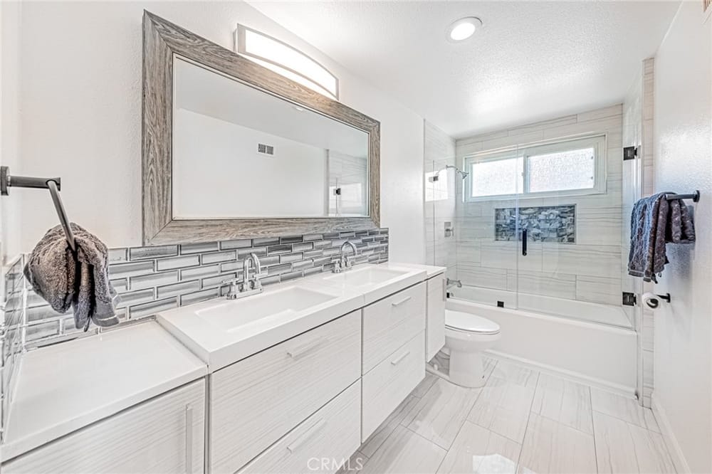 Experience living in this beautifully maintained residence in the north Orange County, boasting Seven bedrooms that can accommodate the largest or multi-generational families. This home showcases a unique multi-level design with luxurious vinyl plank flooring throughout, adding to its elegant and cohesive aesthetic. The lower level has an updated gourmet kitchen features pristine white cabinets, s...leek quartz countertops, Two bedrooms, a newly updated bathroom, an office space, and an access to the backyard. In the main level, you will find spacious living space with fireplace and vaulted ceiling, and a main bedroom with in suite bathroom. You will find Four additional bedrooms in the upper floor with sliding closet doors, recessed lighting, and updated full bathroom with dual vanity. Residents conveniently close to shopping centers, restaurants, golf courses, regional parks, and an access to the freeways. This distinguished residence is a superb choice for those seeking a stylish and serene home. This residence is all about saving you money with water conserving artificial landscaping and 20 free and clear solar panels that does NOT require additional payment by the buyer.