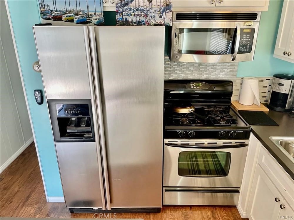 Prime Location! Just ONE BLOCK from the beach, Pacific City, Huntington Beach Pier, shopping, dining, entertainment, and downtown Main Street. This beautifully updated, move-in-ready unit is clean, & well-maintained. Every detail has been meticulously redone, offering excellent condition throughout.The kitchen has been recently remodeled with new cabinets, countertops, stainless steel appliances, ...and sink. The bathroom has also been upgraded, and new wood flooring spans the entire unit. The sale includes all kitchen appliances and new stackable full size washer and dryer.This 2-bedroom, 1-bath unit is approximately 688 sq ft. The second bedroom features a Murphy bed, which can be a bedroom or office or more living space. A newly added front patio deck and railing enhance the outdoor space.Additional amenities include a covered parking space, a storage shed, and a freshly painted exterior.This is an all-age park with a community pool, laundry facilities, and a clubhouse. The unit must be owner-occupied; rentals and Airbnbs are not permitted. Buyers must be approved by the property manager and demonstrate a verified income of approximately 2.5 times the space rent.