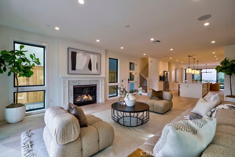 new construction with amazing mountain views built by Thomas James Homes located just minutes away from Downtown Huntington Beach. The first level of this 3 bed, 3.5 bath homes open concept design provides ample room for entertaining and seamless indoor/outdoor living with sliding doors to your own private front patio, Starting off in the great room, floor to ceiling sliding doors leads one out ...to the elevated front patio. Host dinner parties in the dining room or walk a few steps to the gourmet kitchen which has gorgeous stainless appliances, a large island, great counter space,. quartz counters and huge walk in pantry.Next to kitchen is a large formal dining area/ or extra room with sliding doors to a backyard/patio perfect for dogs / or kids.. Upstairs, there are two secondary bedrooms with a shared bathroom, and a laundry room with sink. Down the hall is the expansive grand suite that has sliding doors to a private balcony, a gas fireplace, and a luxury bath which has a freestanding tub, dual-sink vanities, walk-in shower, and a dreamy walk-in closet. On the third floor, there is a game/media room, ANOTHER DEN -BEDROOM AND BATH WITH SHOWER, perfect for those fun game nights. Slide the doors open to the covered roof terrace to enjoy the sunset while putting something together on the kitchenette or making s'mores by the gas fireplace. plumbed for gas BBQ with built in counter and refrigerator. VIEW FROM THIS 3RD LEVEL DECK INCLUDE FASHION ISLAND ,BEACH.New TJH homeowners will receive a complimentary 1-year membership to Inspirato, a leader in luxury travel.
