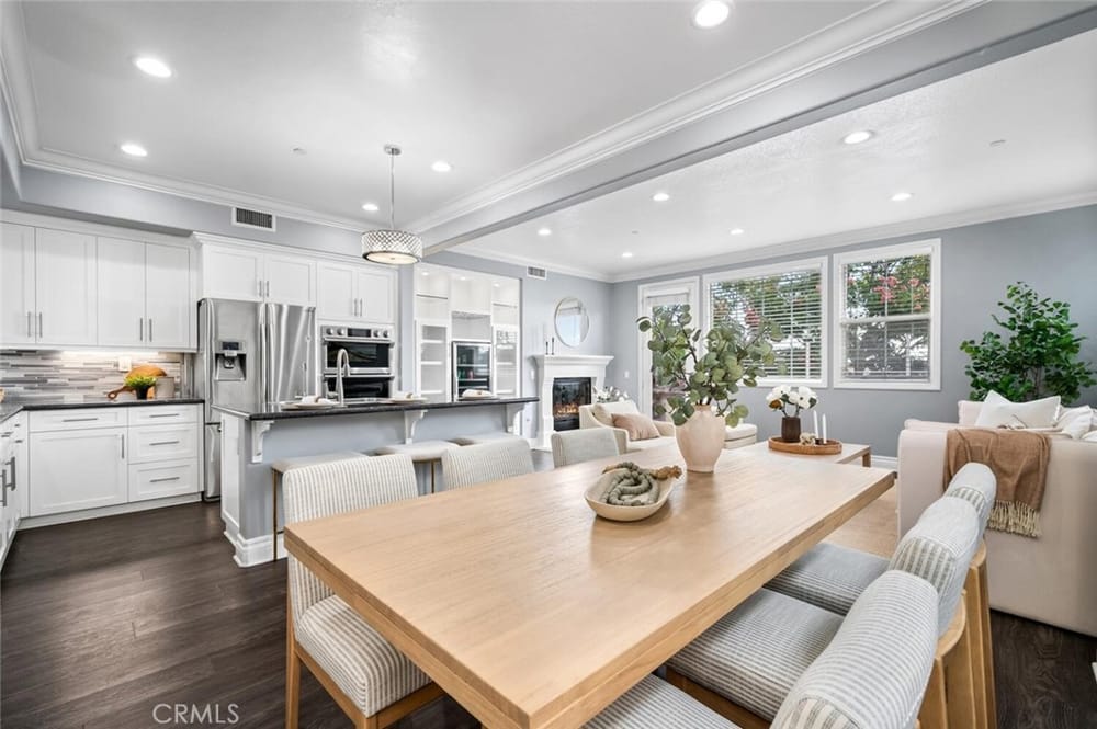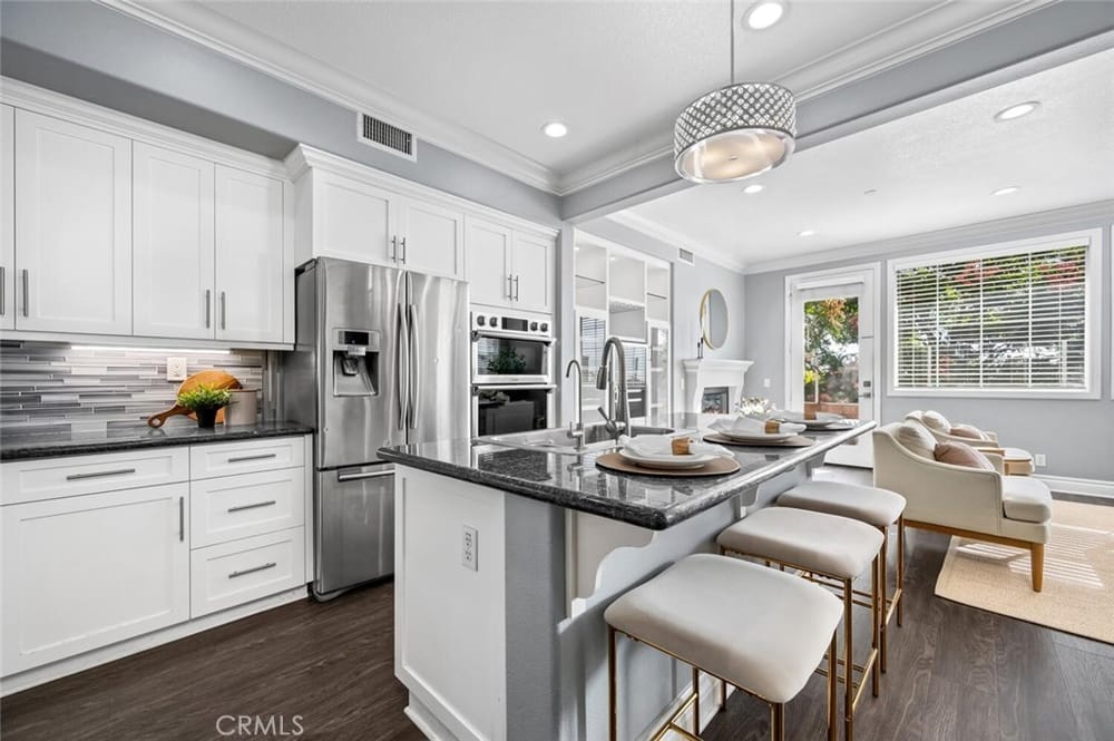 Discover this immaculate turn-key detached home with a spacious 2-car garage and sweeping views of city lights, mountains, and Catalina Island. These captivating vistas can be enjoyed from the main floor, private patio, and master suite, making this home a true standout.With updated premium finishes, the home boasts a beautifully designed kitchen featuring high-end smart appliances with Bluetooth ...technology, reverse osmosis filtration system, soft-close cabinetry with slide-out features, custom lighting, granite countertops, and a custom-built wine refrigerator. Luxury vinyl wood plank flooring spans the entry, den, kitchen, dining, family room, and all bathrooms. Additional touches include upgraded baseboards, crown molding, and fresh interior paint. The upstairs features plush newer carpet, and the main floor bathroom has been remodeled with a sleek modern design.The spacious open kitchen flows into the dining and family rooms, creating an ideal space for entertaining. A large island with bar seating complements ample dining space, while custom cabinetry enhances functionality. The family room, with built-in cabinetry, a fire-glass fireplace, and stunning views, opens to a brick patio equipped with a remote-controlled retractable awning featuring LED lights and a wind sensor. The patio is pre-wired for outdoor TV and includes clear panel fencing to preserve the views.Upstairs, the master suite offers breathtaking views, an en-suite bathroom with dual vanities, a soaking tub, a separate shower, and a walk-in closet with built-ins. A versatile loft provides a cozy retreat or TV area, while two additional bedrooms and a full bathroom accommodate family or guests. The upstairs laundry room adds convenience.Every detail has been carefully considered, ensuring this home is ready for you to enjoy. From modern luxury finishes to a prime location with top-rated schools, unparalleled views, this property offers a perfect blend of comfort and sophistication. Schedule your private tour today and make this exceptional home your own!