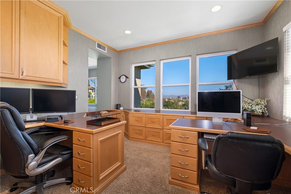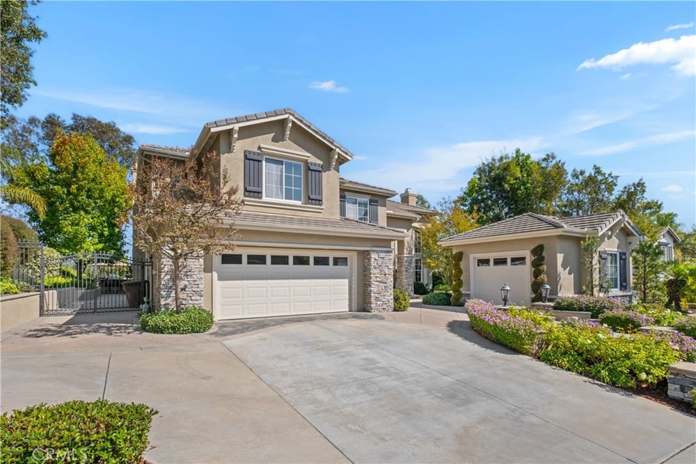Summit Point Estates is a secure, guard-gated community featuring just 205 distinctive homes, each thoughtfully crafted by three different builders, offering a diverse range of floor plans and several custom designs. This impressive 4,140 sq ft residence is nestled on a spacious 10,621 sq ft lot, providing an ideal setting for luxurious living.Located within this prestigious community, 8163 Mornin...g Canyon Lane masterfully blends elegant finishes with a well-designed layout. As you enter, you are welcomed by a grand foyer adorned with soaring ceilings, a stunning spiral staircase, and an abundance of natural light. This home offers five bedrooms and four and a half baths, along with an office, a den, and a beautifully finished custom-built library, ensuring versatile spaces for every need. The main level also features a guest quarter, perfect for extended stays. The kitchen is an open floor plan with granite counters, a large island, GE appliances, and a walk-in pantry. The second-floor primary suite serves as a serene retreat, boasting breathtaking views and a luxurious bathroom complete with a jacuzzi tub and two spacious walk-in closets. Additional highlights include a two-car garage and a free-standing 3rd car garage (to include a workbench) providing ample parking and storage.Residents enjoy exclusive access to scenic hiking trails, including the Walnut Creek Reservoir and the Santiago Oaks Wilderness Area, as well as nearby regional parks, enhancing the outdoor lifestyle. This charming home is ready for you to move in and enjoy with family and friends.