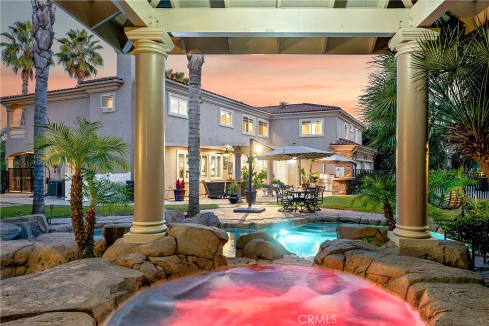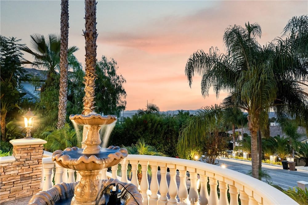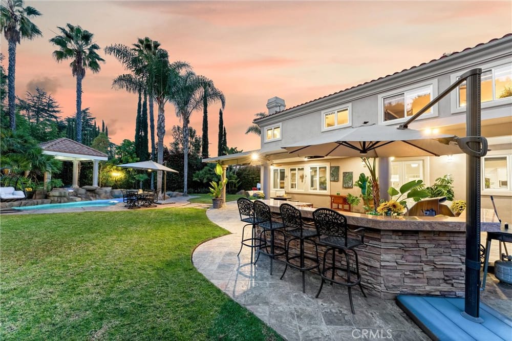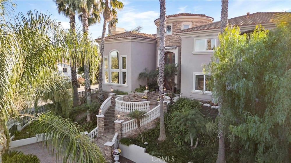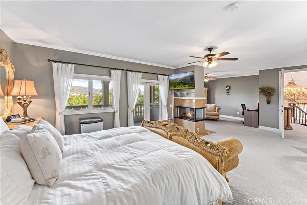 ELEGANT ESTATE HOME | PRIVATE GATED ENTRIES | 6-BED/5-BATH | POOL + SPA | Welcome to the epitome of luxury California living! This exquisite 6-bedroom, 5-bath estate home is a true sanctuary for the discerning buyer seeking privacy, elegance, & unmatched indoor-outdoor living. Nestled on a lush corner lot, this property boasts 3 gated entrances, a sophisticated entry complete with panoramic city v...iews, & a private gated rear entrance to its 4-car garage. As you step through the double-door grand entrance, you're greeted by breathtaking architectural details including a sweeping grand staircase, multiple chandeliers, intricate coffered ceilings, & soaring windows that flood the space with natural light. The formal living room & dining room grace the front of the home & provide exquisite entertaining space. The remodeled chef’s kitchen is a culinary dream, featuring an open concept, stainless steel appliances, an oversized island, breakfast bar, walk-in pantry, custom cabinetry and lighting, and self-closing doors and drawers. Whether you're a seasoned chef or a home cook, this kitchen is designed to inspire & impress. The adjacent family room offers the perfect space for gatherings, complete with front balcony & access to your backyard oasis. Upstairs, the elegant primary suite serves as a private retreat featuring a dual-sided fireplace, a spacious sitting area, & a private balcony with stunning mountain & city views. The spa-inspired primary bathroom offers a deep soaking tub, oversized walk-in shower, dual vanities, & custom storage. 3 additional upstairs bedrooms, each with walk-in closets, & upgraded bathrooms provide comfort & style. The expansive loft is ideal for entertainment. The first floor has 2 additional bedrooms & baths, perfect for multi-generational living. Additional highlights include custom window treatments, recessed lighting, 3 fireplaces, a new AC system, & PEX piping. The outdoor space is an entertainer's paradise. Relax by the saltwater pool, enjoy the gazebo-covered spa with a cascading waterfall, or refresh under the outdoor shower. Host al fresco dinners at the built-in BBQ island or unwind by the fire pit surrounded by the expansive grassy area. The 4-car garage with epoxy flooring & built-in storage rounds out ample parking for up to 10 vehicles. Situated near major freeways, premier shopping & dining destinations, this home combines convenience with luxury. Seize the rare opportunity to make this private estate your home.