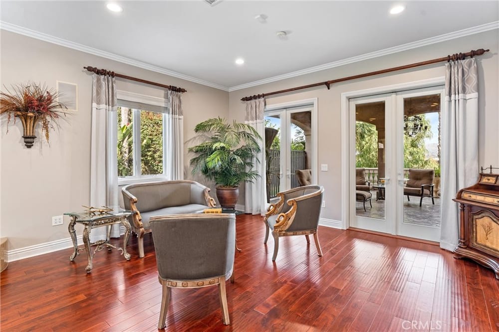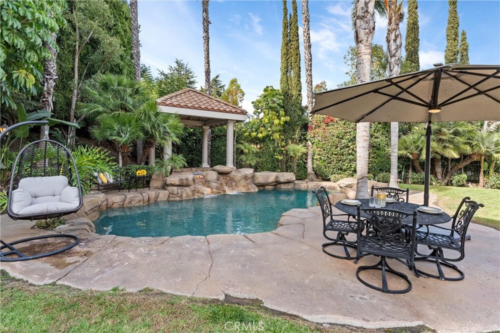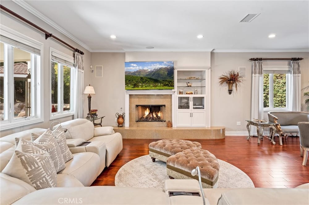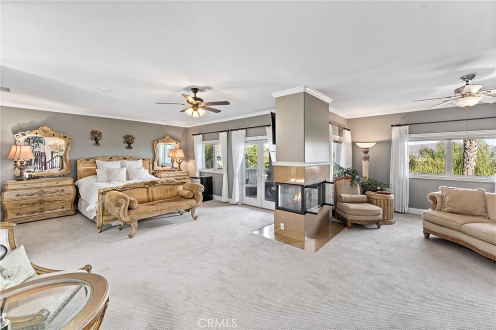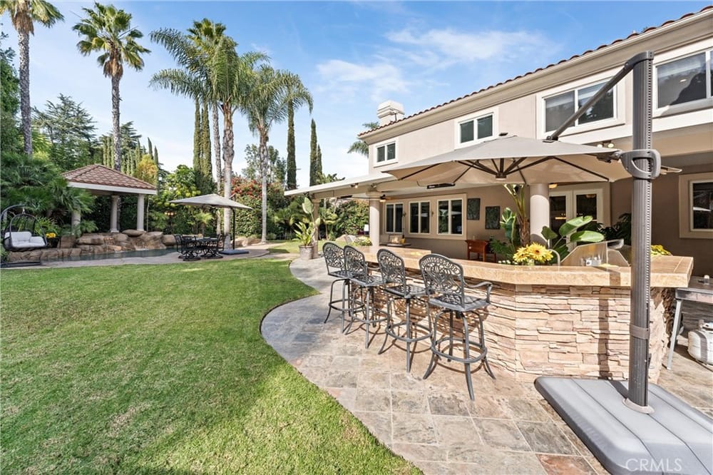 ELEGANT ESTATE HOME | PRIVATE GATED ENTRIES | 6-BED/5-BATH | POOL + SPA | Welcome to the epitome of luxury California living! This exquisite 6-bedroom, 5-bath estate home is a true sanctuary for the discerning buyer seeking privacy, elegance, & unmatched indoor-outdoor living. Nestled on a lush corner lot, this property boasts 3 gated entrances, a sophisticated entry complete with panoramic city v...iews, & a private gated rear entrance to its 4-car garage. As you step through the double-door grand entrance, you're greeted by breathtaking architectural details including a sweeping grand staircase, multiple chandeliers, intricate coffered ceilings, & soaring windows that flood the space with natural light. The formal living room & dining room grace the front of the home & provide exquisite entertaining space. The remodeled chef’s kitchen is a culinary dream, featuring an open concept, stainless steel appliances, an oversized island, breakfast bar, walk-in pantry, custom cabinetry and lighting, and self-closing doors and drawers. Whether you're a seasoned chef or a home cook, this kitchen is designed to inspire & impress. The adjacent family room offers the perfect space for gatherings, complete with front balcony & access to your backyard oasis. Upstairs, the elegant primary suite serves as a private retreat featuring a dual-sided fireplace, a spacious sitting area, & a private balcony with stunning mountain & city views. The spa-inspired primary bathroom offers a deep soaking tub, oversized walk-in shower, dual vanities, & custom storage. 3 additional upstairs bedrooms, each with walk-in closets, & upgraded bathrooms provide comfort & style. The expansive loft is ideal for entertainment. The first floor has 2 additional bedrooms & baths, perfect for multi-generational living. Additional highlights include custom window treatments, recessed lighting, 3 fireplaces, a new AC system, & PEX piping. The outdoor space is an entertainer's paradise. Relax by the saltwater pool, enjoy the gazebo-covered spa with a cascading waterfall, or refresh under the outdoor shower. Host al fresco dinners at the built-in BBQ island or unwind by the fire pit surrounded by the expansive grassy area. The 4-car garage with epoxy flooring & built-in storage rounds out ample parking for up to 10 vehicles. Situated near major freeways, premier shopping & dining destinations, this home combines convenience with luxury. Seize the rare opportunity to make this private estate your home.