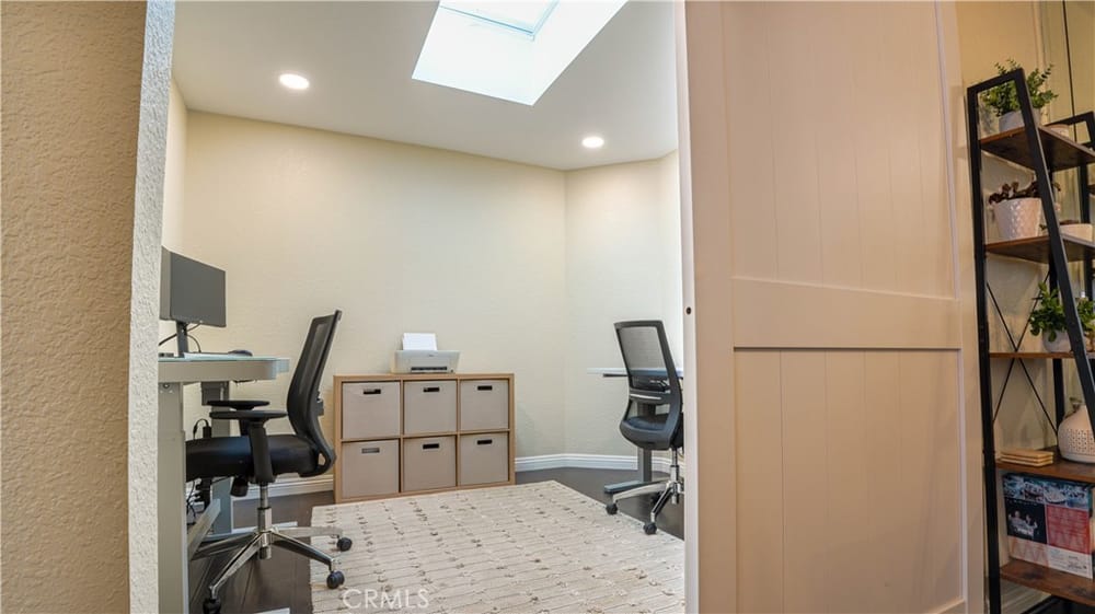 Discover this stunning Anaheim Hills residence, nestled in the sought-after Bel Air community. This single-story, remodeled abode showcases a luminous, open layout with two bedrooms, two baths, and a freshly transformed office space where the atrium once was, now featuring an elegant barn door. Enter the expansive kitchen, adorned with granite countertops, and equipped with a dishwasher and a ...brand-new microwave oven. The home also features tile and laminate floors, updated lighting throughout, and a whole-house water softener for enhanced water quality. The master suite impresses with its high vaulted ceilings, dual vanities, ample closet space, and a secluded toilet and shower area. Other notable features include ceiling fans, a recently installed water heater, bespoke built-in shelves in the bedroom, inset lighting, and a handy linen closet. The family room is anchored by a warm fireplace, while a delightful bay window in the kitchen and a sliding door bathe the space in natural light. Step outside to the ultimate backyard designed for entertainment, boasting mountain vistas, a natural gas fire pit, and a newly enhanced sliding screen. The front yard is graced with a meticulously kept sprinkler system, and the two-car garage, coupled with a private driveway, provides abundant parking. Positioned conveniently near shopping centers, freeway entrances, and with modest association fees of only $77 monthly, this ready-to-occupy home delivers comfort, allure, and a quintessential outdoor living experience. Seize the opportunity to own this distinctively modernized gem in Anaheim Hills!