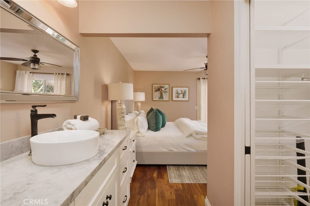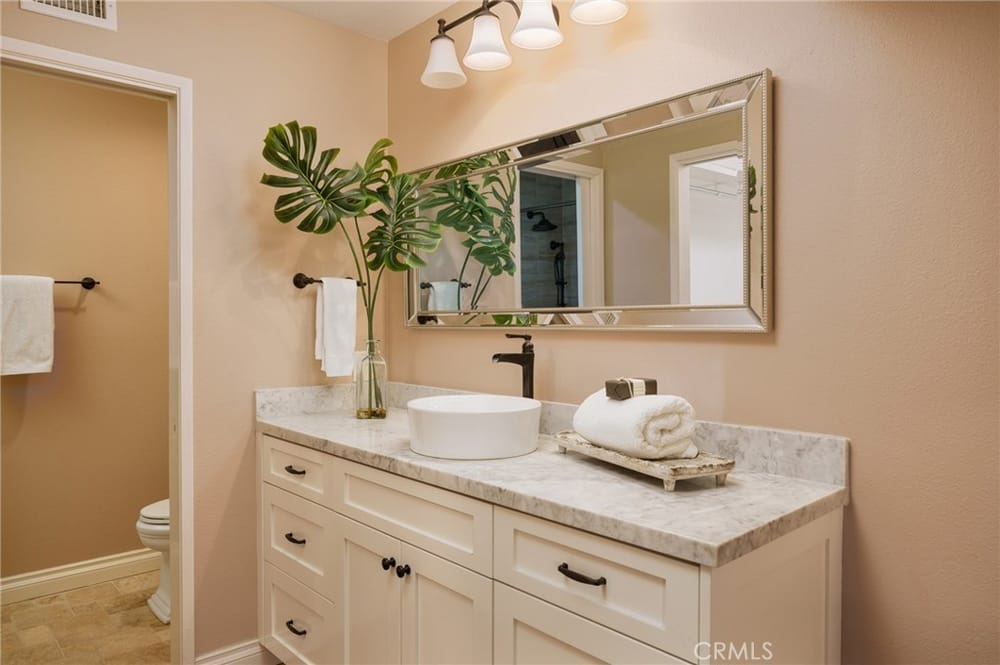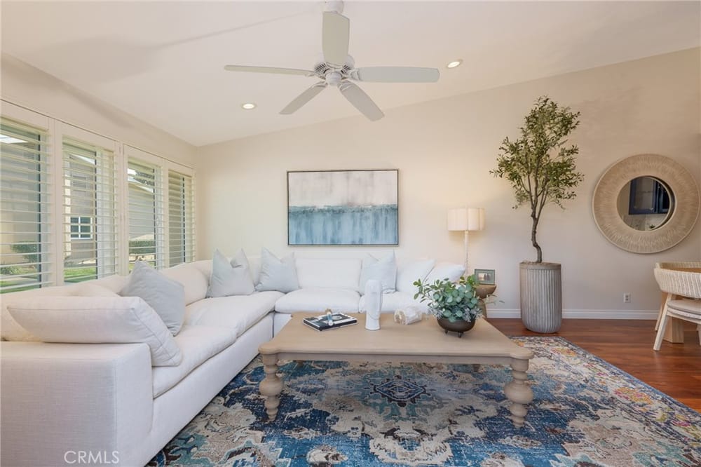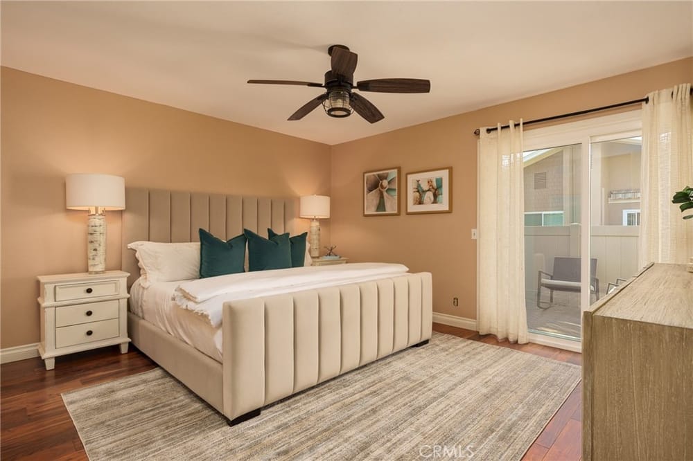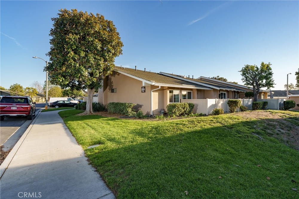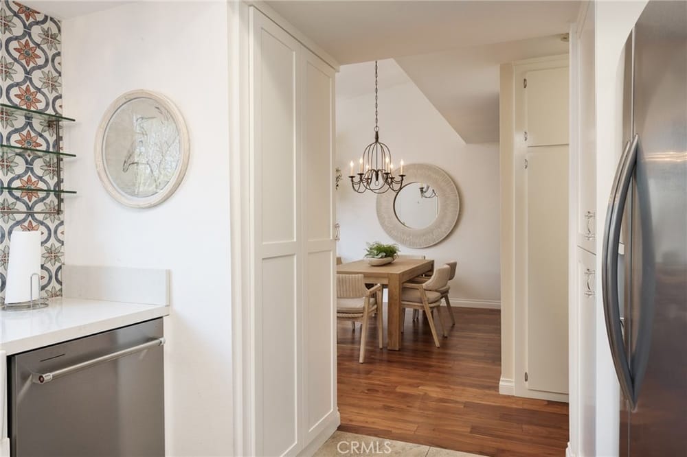 Corner unit, parking in front, vaulted ceilings, two patios, walk-in closet, refrigerator and washer/dryer included, new kitchen, new bathrooms, new flooring, new windows.