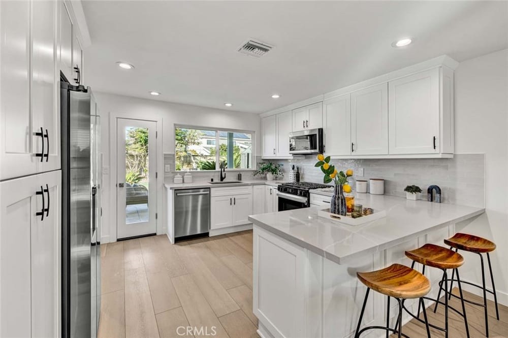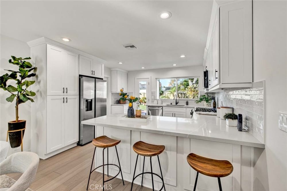 Absolutely Stunning, Model Perfect, Single Level 4 Bedroom, 2 Bath Home with 1,624 Square Feet that has been Completely Remodeled from Top to Bottom with Gorgeous Appointments Throughout. Just Like a Brand New Home - Everything is New! New! New! Located in one of Fountain Valley's Premier Neighborhoods with all Top-Ranked Schools (Courreges, Fulton, FVHS) -- Steps to Park, Close to Shopping & Dini...ng, and just a short drive to the Beach. Lovely Curb Appeal Greets You as you Approach this Wonderful Home with its Pristine Landscaping, Shade Tree, Tile Roof, and Brick Front Porch. Step Through the Custom Front Door with Beveled Glass to the Open Flowing, Light and Bright Floorplan, Showcasing an Entry, Spacious Living Room with Fireplace, Formal Dining Room, and Brand New Kitchen that Boasts Quartz Countertops, Subway Tile Backsplash, Breakfast Bar, Custom Self-Closing White Shaker Cabinetry that Includes Pantry with Pull-Outs, Hidden Trash, Deep Pots & Pans Drawers, and Lazy Susan. It Also has Brand New Appliances (Gas Range, Microwave, Dishwasher) and a Farm Sink. This Like-New Home Features Top-Quality Wood Vinyl Flooring Throughout, NEW AC Condenser with NEW Ducting, LED Recessed Lighting and Overhead Light Fixtures, Raised Panel Interior Doors, Designer Closet Doors, High Base Boards, Dual Pane Windows with Custom Casements and Blinds. The Hallway Bathroom has a New Vanity, New Fixtures, a Tub/Shower Combo, and a Skylight. It Boasts a Large Primary Suite with Luxurious Ensuite Bathroom that has an Oversized Walk-In Shower with Multiple Shower Heads and Clear Glass Enclosure. The Backyard is a Tranquil Oasis from the Outside World with its Large Covered Patio with Recessed Lighting, Open Brick-Accented Patio, Artificial Turf, 2 Sheds, and Block Wall and Vinyl Fencing. Welcome Home!!