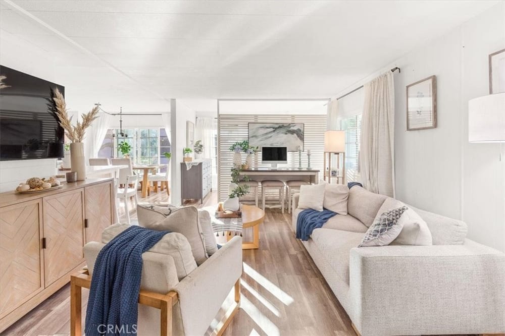 Welcome to this charming 3-bedroom plus den, 2-bath home that boasts numerous recent upgrades and modern features. This residence offers an inviting open floor plan that seamlessly connects the spacious kitchen, cozy dining area, and living spaces, making it perfect for both everyday living and entertaining.Key highlights include newly remodeled bathrooms that add a touch of contemporary elegance ...and comfort, ensuring a move-in ready experience. The furnace was replaced less than 3 years ago, providing peace of mind and energy efficiency. To enhance your investment, the purchase of this home comes with a Home Warranty.The exterior is equally impressive, with all-new skirting installed less than 2 years ago, enhancing curb appeal and durability. Additionally, the property includes a custom-built shed, providing ample storage solutions.Situated in an all-age family park within the highly regarded Cypress school district, this home offers access to excellent amenities. Residents can enjoy the community clubhouse, gym, pool area, kids’ play area, and convenient guest parking. The location also ensures easy access to major freeways, making commuting and travel a breeze.Don’t miss this opportunity to own a home that combines modern comfort with practical features in a welcoming community. Schedule your showing today!