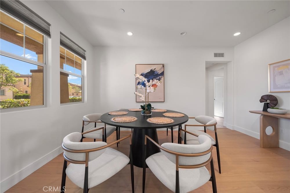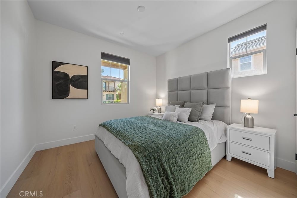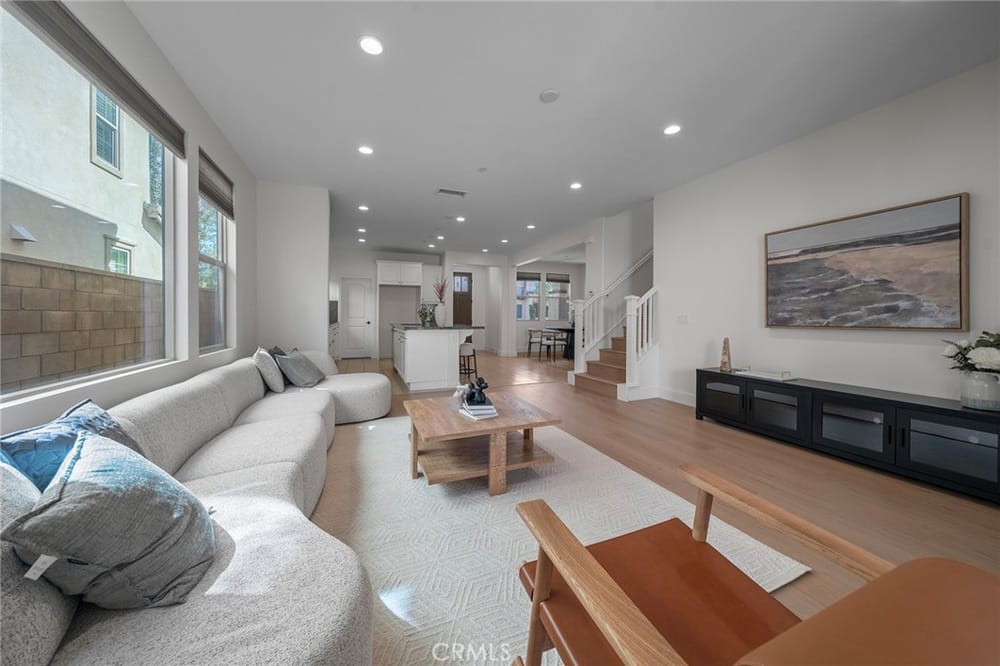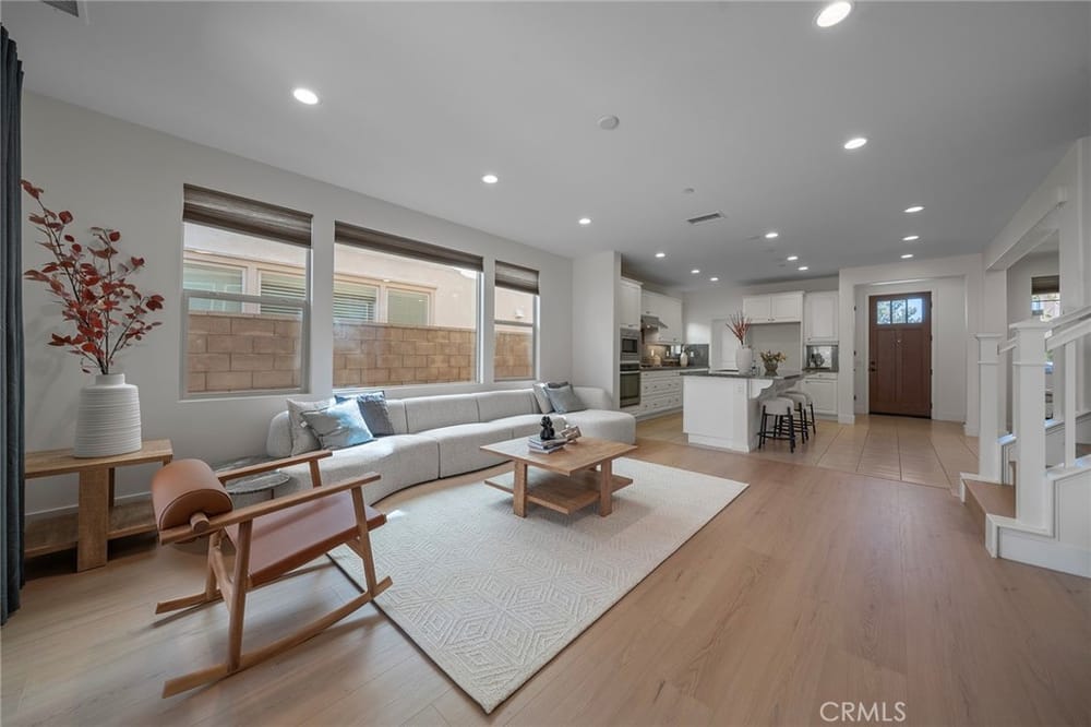 Welcome to this exceptional 4-bedroom, 3-bathroom home in the prestigious Greenwood community at Tustin Legacy. Built in 2016 and meticulously maintained, this nearly new residence presents a seamless blend of comfort and style, featuring brand new waterproof flooring, fresh interior paint, and a fully serviced HVAC system. The bright and open great room flows effortlessly into the chef-inspired k...itchen, complete with quartz countertops, a large center island, and top-of-the-line KitchenAid appliances. The versatile main floor bedroom can serve as a guest room, home office, or den. Upstairs, the luxurious master suite boasts dual vanities, a soaking tub, a separate tiled shower, and an expansive walk-in closet. The beautifully landscaped outdoor space, featuring a California Patio and BBQ area, is perfect for entertaining. Residents enjoy resort-style amenities, including a pool, spa, clubhouse, and the expansive 6-acre Ron Foell Park, all within easy reach of top shopping and dining destinations and major freeways. Don’t miss the opportunity to own this stunning move-in-ready home in the heart of Orange County.