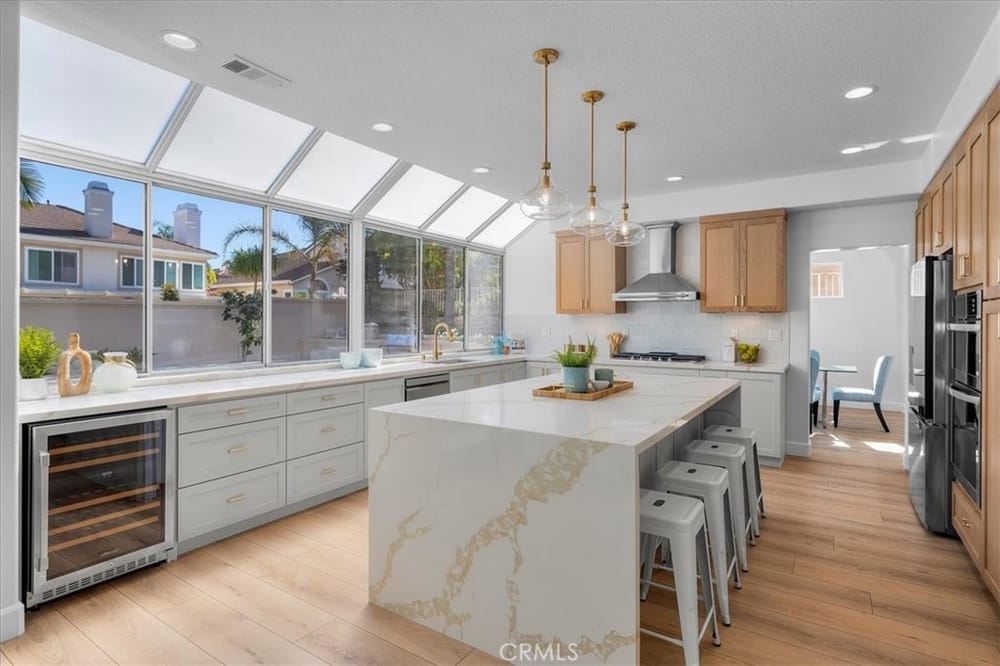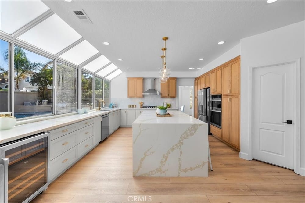 Với sự thanh lịch sang trọng và lớp hoàn thiện tinh tế, ngôi nhà 4 phòng ngủ, 4,5 phòng tắm này có phòng thưởng đa năng mang đến sự kết hợp hoàn hảo giữa sự thoải mái cho gia đình và cuộc sống phong cách. Bước qua lối vào lớn là một bố cục ngoạn mục bao gồm phòng ăn trang trọng, phòng khách và phòng gia đình. Trái tim của ngôi nhà là nhà bếp sành điệu, được chế tác cho cả những buổi họp mặt gia đình và giải trí. Nó có một hòn đảo lớn với mặt bàn thạch anh thác nước và tủ hai mặt để lưu trữ thêm, đèn thả, đồ dùng bằng thép không gỉ hoàn toàn mới, tủ lạnh rượu vang và tủ đựng thức ăn rộng rãi. Nhà bếp liền mạch với phòng gia đình, nơi tự hào có lò sưởi bằng đá cẩm thạch tùy chỉnh mới. Khu vực sinh hoạt chính gây ấn tượng với trần nhà cao vút và bức tường ốp gỗ nổi bật được trang trí bằng đèn treo tường thanh lịch. Một phòng ngủ ở tầng dưới với phòng tắm riêng mới được cải tạo là nơi nghỉ ngơi lý tưởng cho khách hoặc cuộc sống nhiều thế hệ. Ở tầng trên, hãy trải nghiệm tấm thảm mới sang trọng, trong khi tầng dưới trưng bày sàn mới cho vẻ đẹp hiện đại, bóng bẩy. Ngôi nhà mới được sơn lại cả bên trong và bên ngoài, ngoài ra còn có gara để 3 ô tô và một ốc đảo ngoài trời với hồ bơi riêng, tạo nên bối cảnh tuyệt vời để thư giãn và tận hưởng cuộc sống tuyệt vời nhất ở Nam California. Ngôi nhà này thực sự là định nghĩa lại sự sang trọng—đừng bỏ lỡ nhé!