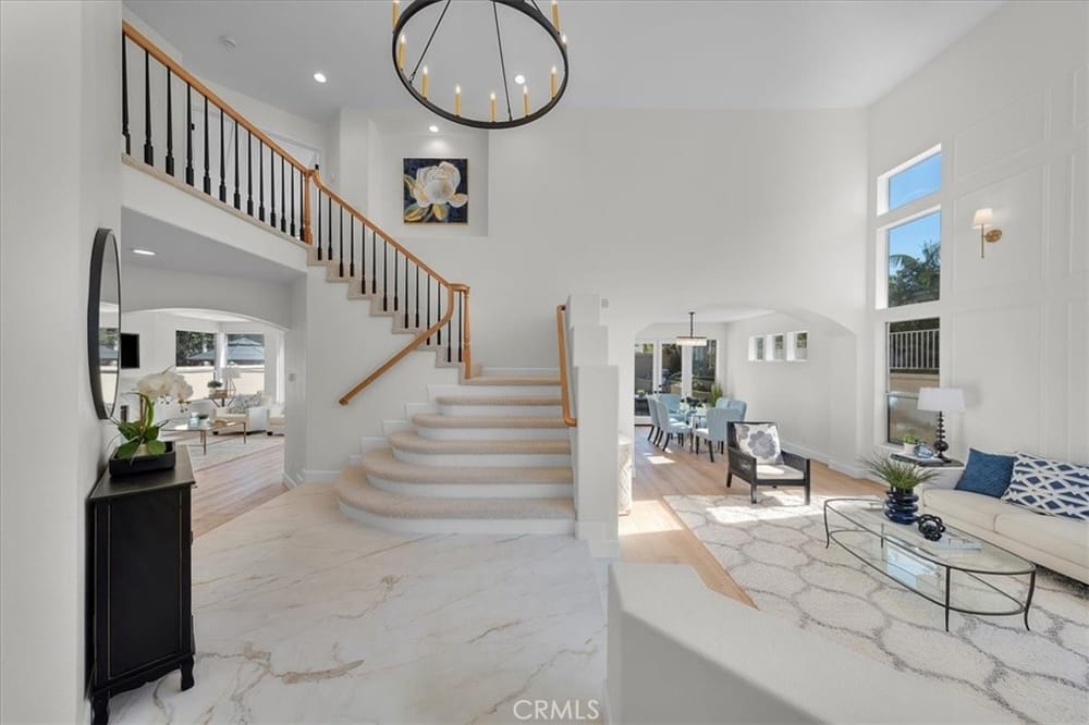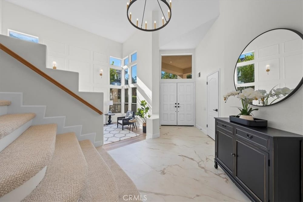With chic elegance and sophisticated finishes throughout, this 4-bedroom, 4.5-bath residence with a versatile bonus room offers the perfect blend of family comfort and stylish living. Enter through the grand entrance to a breathtaking layout that includes a formal dining room, living room, and family room. The heart of the home is the gourmet kitchen, crafted for both family gatherings and enterta...ining. It features an oversized island with waterfall quartz countertops and dual-sided cabinets for extra storage, pendant lighting, brand-new stainless steel appliances, a wine fridge, and a spacious walk-in pantry. The kitchen flows seamlessly into the family room, which boasts a new custom marble fireplace. The main living area impresses with soaring high ceilings and a striking paneled wall adorned with elegant sconce lighting. A downstairs bedroom with a newly renovated en-suite bathroom provides an ideal retreat for guests or multi-generational living. Upstairs, experience the plush new carpet, while the downstairs showcases new floors for a sleek, modern aesthetic. Freshly painted inside and out, the home also includes a 3-car garage and an outdoor oasis with a private pool, creating the ultimate setting to relax and enjoy the best of Southern California living. This home is truly luxury redefined—don’t miss it!