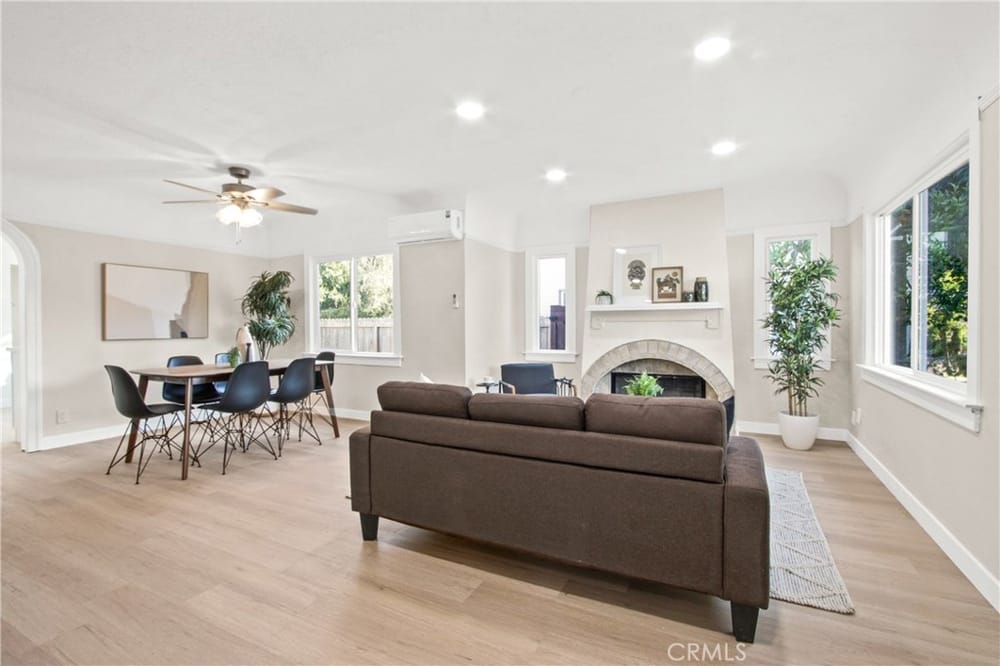 A beautiful home nestled in a lovely quiet tree lined street that has been remodeled and is move in ready. This home features brand new flooring and paint throughout, 4 bedrooms and 2 baths, spacious living room area with a fireplace, new kitchen with new appliances, the master bedroom has a beautiful door archway and its own bathroom with dual vanity sinks plus a walk-in closet, this property has... tons of potential for an ADU with its spacious backyard. Close to downtown Santa Ana, lots of restaurants and shopping close by. Don't wait, see this one today!