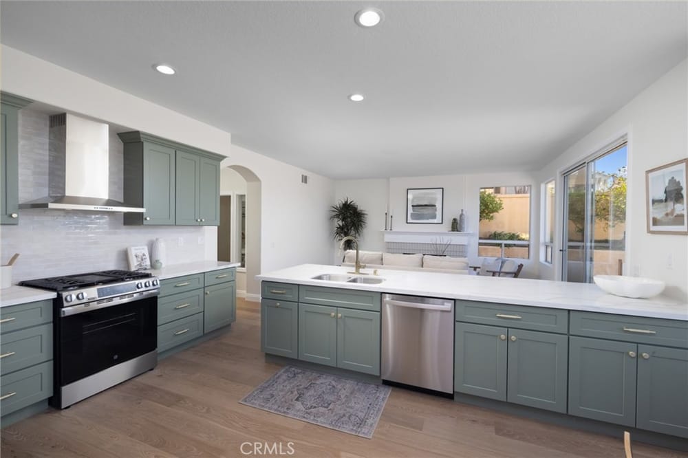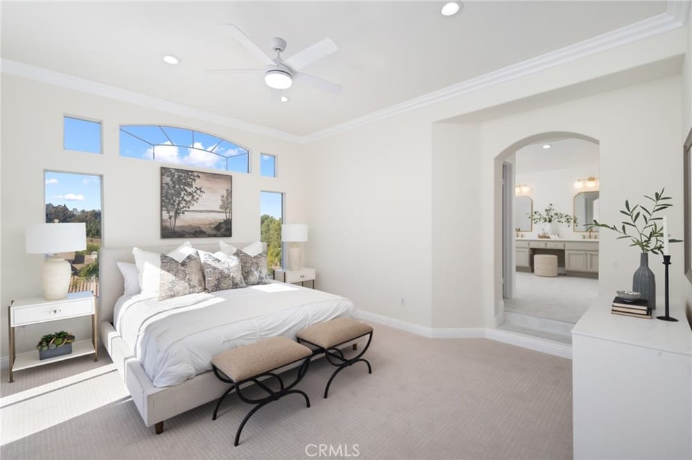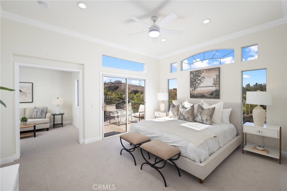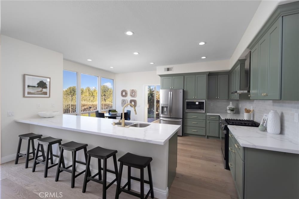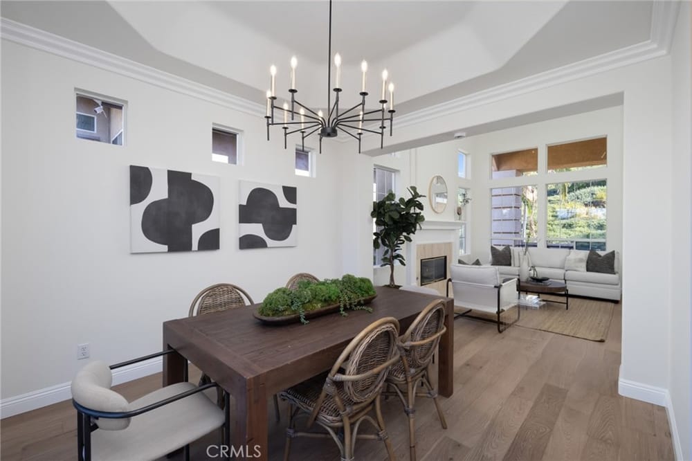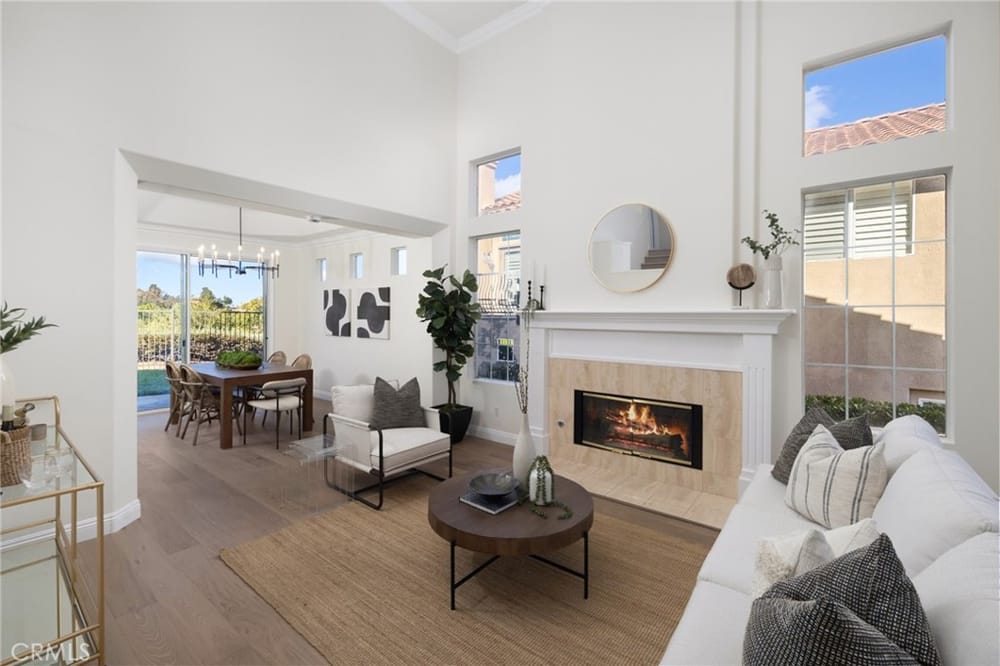 Panoramic views, new updates including a gourmet kitchen, a main floor bedroom with full bathroom, and an oversized primary retreat, set this home apart. This sprawling, newly renovated, 4 bedroom, 3 bathroom, view-home, has just been reimagined with beautiful engineered hardwood flooring, fresh paint, a brand new kitchen, bathroom updates, new lighting, new baseboards and new low pile carpet upst...airs. Natural light pours into the airy living room, accentuated by soaring ceilings, fireplace and a grand staircase.The brand new chef’s kitchen, framed by the captivating hillside views, showcases new cabinets, elegant quartz countertop, custom backsplash, giant island peninsula, new stainless-steel appliance package, new sink and faucet, and designer cabinet pulls. The picturesque views from the dining room create the perfect backdrop for dinner parties, holiday soirees or serene evenings at home. The spacious family room is complete with cozy fireplace and views of the yard and hills. Rounding out the first floor, a main floor bedroom with full bathroom, makes for an ideal office or guest room. Upstairs, the oversized primary retreat has an additional loft area, ideal for an office, workout space or nursery, and it’s own private balcony showcasing stunning views. The primary retreat boasts new carpet, new ceiling fan, two closets including a large walk-in closet, and an oversized bathroom en suite with dual sink vanity, new floor tile, elegant gold hardware, new light bars, mirrors, soaking tub and walk-in shower. Down the hall, two additional bedrooms. The hall bathroom has been updated with designer floor tile, hardware, mirrors, fixtures and light bars. Enjoy watching the sun set from your own private balcony or hosting parties in the low-maintenance backyard, complete with your own citrus trees, framed by picturesque views. There is a spacious main floor laundry area with new tile, cabinets and a sink. Three-car garage with direct access into the home and large driveway. Located within a coveted Anaheim Hills neighborhood, on a single-loaded cul-de-sac street, make this home an idyllic and private location. Zoned to award-winning schools, close to parks, hiking trails, fine dining, shopping and transportation. This peaceful location, paired with breathtaking views, and tasteful updates, is not to be missed.