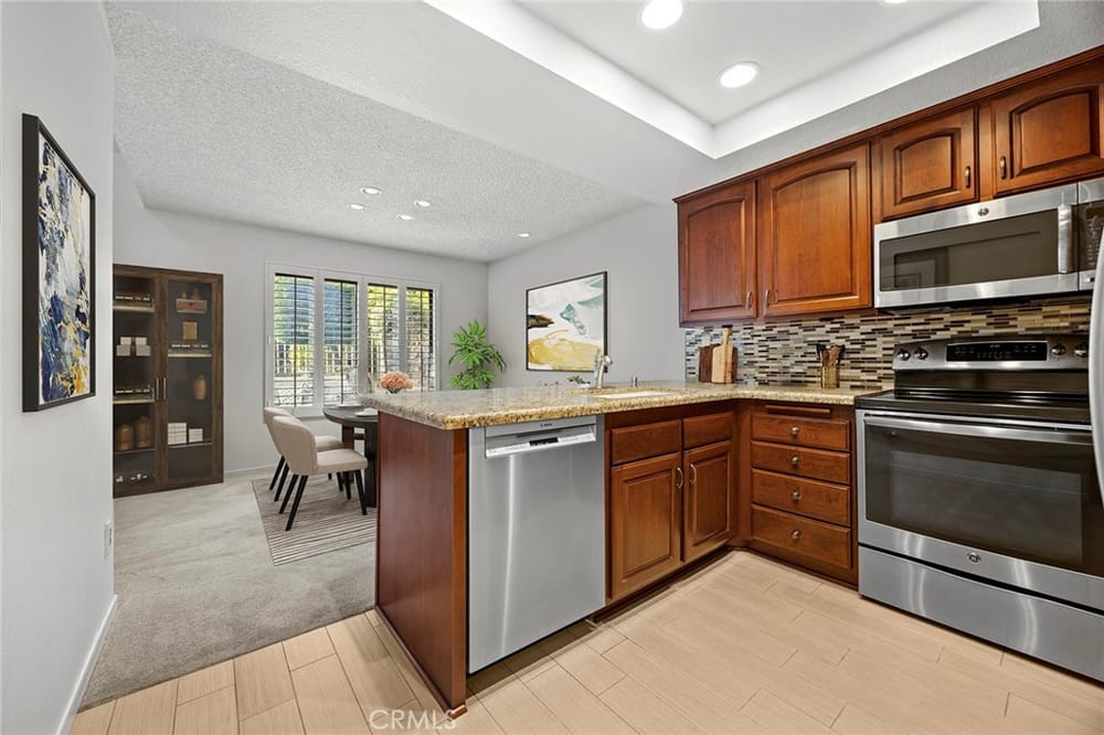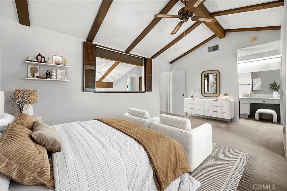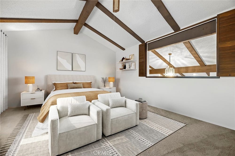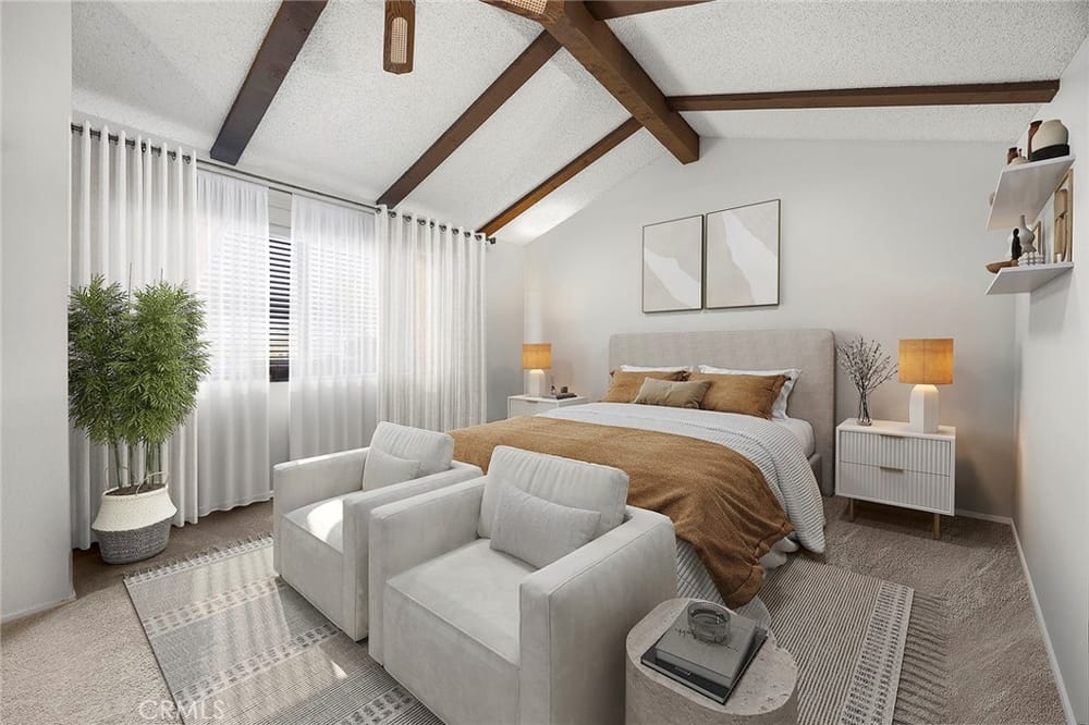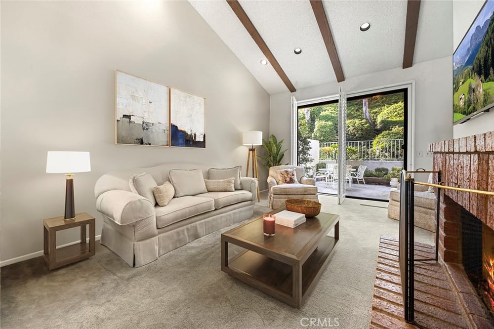 Imagine this … a charming condo tucked deep within the neighborhood, boasting timeless character, super condition, and complemented by an inviting private backyard setting. As you enter, you're greeted by soaring beamed ceilings that add warmth and rustic charm to the open living space. The cozy brick fireplace becomes the heart of the home, perfect for gathering ‘round on cool evenings. Enjoy t...he granite kitchen that offers a casual dining counter, plentiful meal prep space, richly stained cabinetry, and newer stainless appliances. A formal dining area lies adjacent to the efficient kitchen making entertaining family and friends a breeze. This light and bright setting is accented by attractive plantation shutters that finish off the generous slider that leads to your private outdoor living space. Ascend the stairway that leads to the bedroom level. On your right is the surprisingly spacious primary suite with beamed ceilings, and is large enough to accommodate a private sitting area, creating a welcoming retreat, finished with a generous mirrored walk-in closet that offers plenty of organized storage. The second bedroom is versatile, ideal for guests, a home office, or a hobby room, plus a second full bath upstairs rounds out the upper level amenities. Outside, your spacious private sun-drenched patio awaits, offering a tranquil escape with lush green landscaped views, accented by raised planters that beckon you to plant your favorite blooms or create a bountiful veggie garden. What an ideal spot to enjoy morning coffee or evening relaxation. Direct access to the two-car garage, with convenient laundry service located in the garage area. This condo effortlessly combines comfort, style, and a serene outdoor living space, coupled with desirable HOA amenities, and ideally situated near favorite restaurants and convenient shopping.