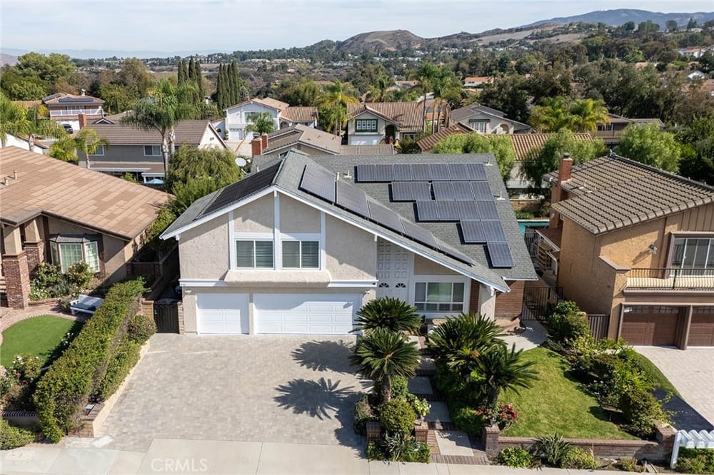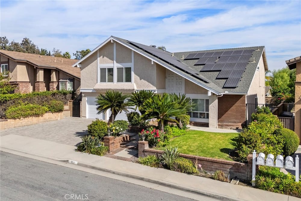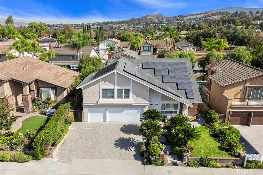 Welcome to this wonderful luxury residence in Anaheim Hills—a true haven of comfort, style, and convenience. Nestled within walking distance of Anaheim Hills Elementary and surrounded by the natural beauty of the area, this home is one of the rare properties with No HOA and No Mello-Roos, offering true ownership freedom. Step inside to discover a welcoming ambiance and meticulous design. A custom ...wrought-iron staircase with a stunning wood railing greets you in the foyer, leading to the spacious living room with its soaring vaulted ceiling. Ideal for hosting, the formal dining room creates a perfect backdrop for memorable gatherings. Large kitchen featuring stone countertops, a walk-in pantry, and a cozy dining area overlooking the family room. it’s easy to imagine evenings by the beautiful masonry fireplace, which adds warmth and charm on chilly nights. Throughout the home, dual-pane windows with elegant wood shutters offer both style and efficiency. Large master suite is a true retreat, featuring dual closets and a spa-like master bath with dual vanities. The downstairs area, with hardwood floors in high-traffic zones, ensures durability and ease. With three-car garage equipped with epoxy flooring and additional storage, organization is effortless, while the stone paver driveway offers ample parking and curb appeal. Additional features include an inside laundry room, a whole-house water softener system, leased solar panels to reduce utility costs, and a separate solar unit dedicated to the Pebble Tec saltwater pool and spa, keeping them warm year-round for your enjoyment. Outside, a beautiful backyard with stone pavers provides a low-maintenance oasis. Perfectly situated, this home offers easy access to major freeways (55, 22 & 91) and proximity to local dining, entertainment, and miles of hiking and mountain biking trails, plus the Nature Center and Walnut Reservoir. This is a rare opportunity to own a property that combines luxury, convenience, and freedom in the heart of Anaheim Hills. Don’t miss your chance to make it yours!