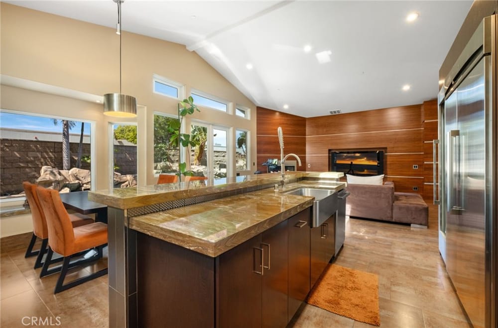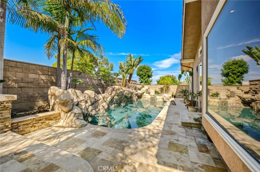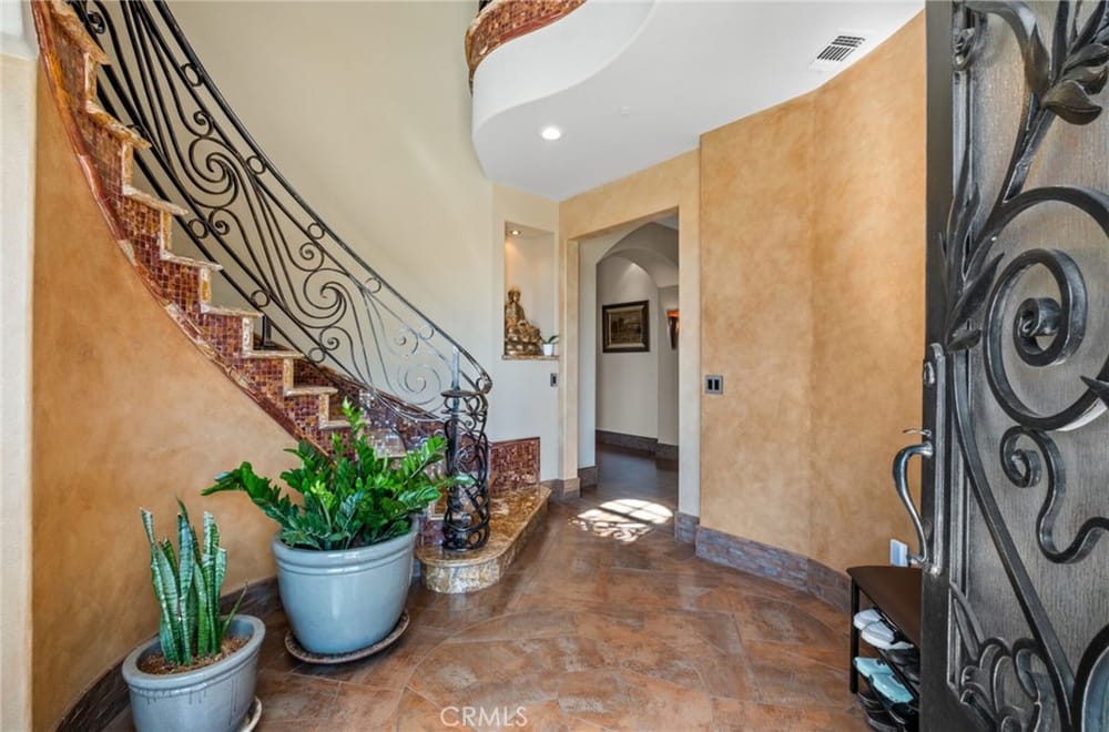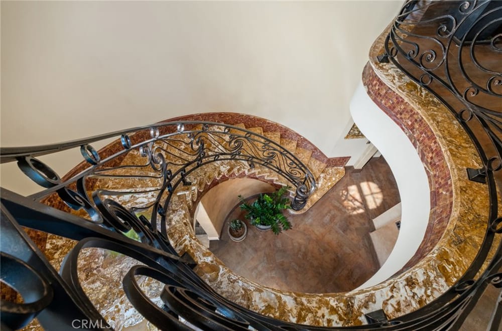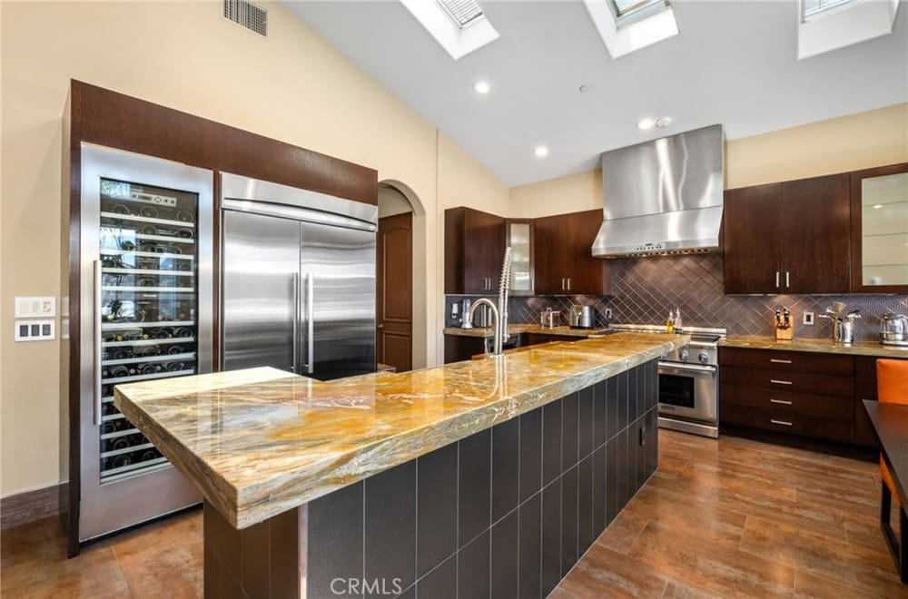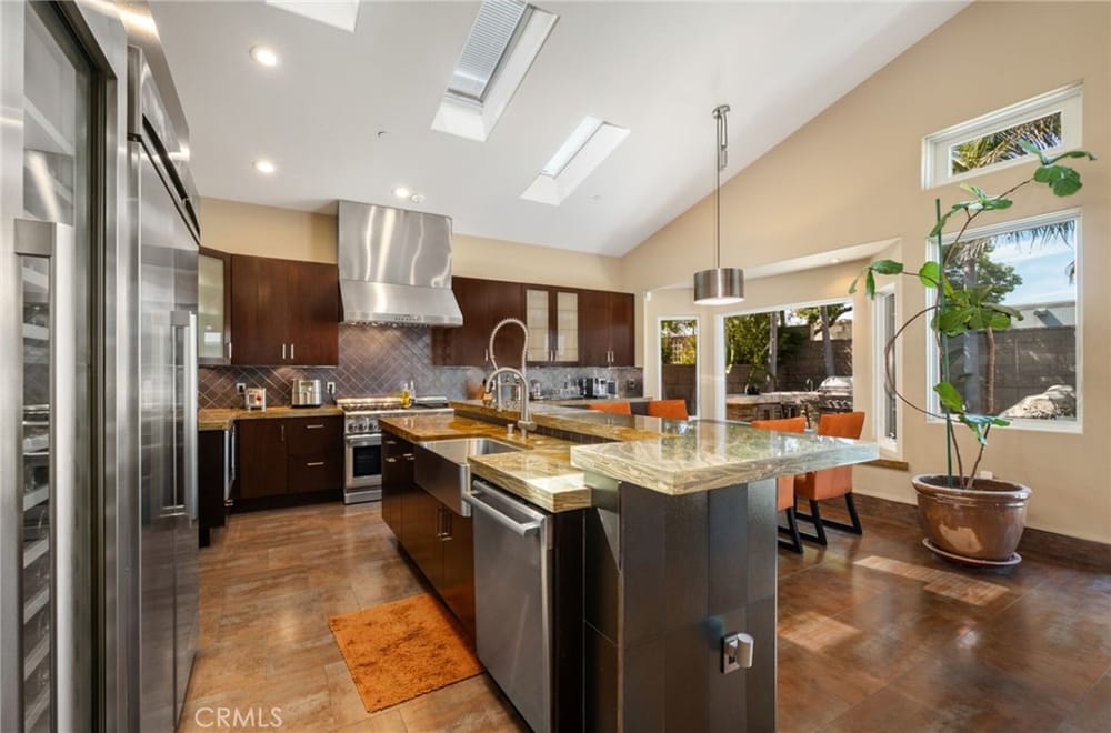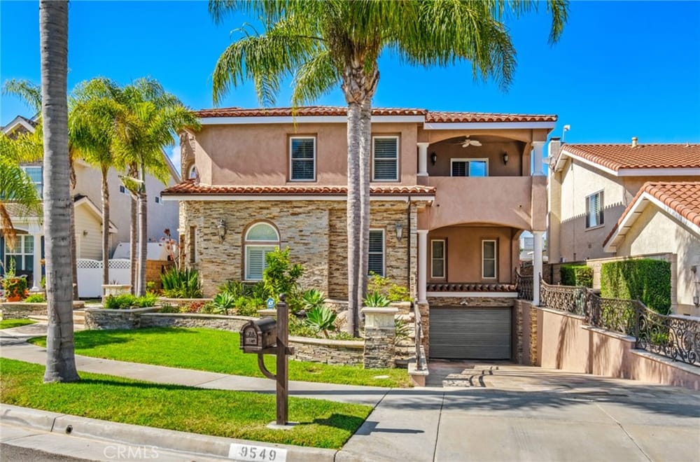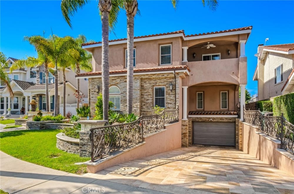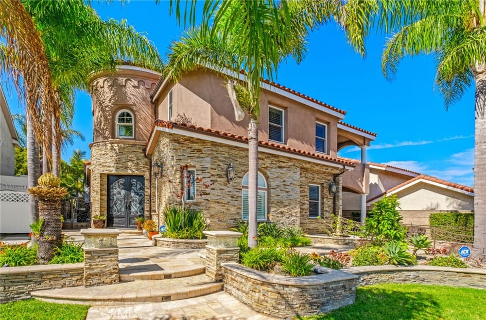 Discover an unparalleled living experience in this one-of-a-kind palatial estate designed for multi-generational living. Nestled at the end of a cul-de-sac, less than 4 miles from the beach, this custom-built masterpiece is one of only five that were built in this exclusive enclave. Crafted in 2006, this 4,653 SF home features 5 bedrooms, 4 full baths, 2 half baths (one primary suite up & one down...), and a remarkable 2,850 SF subterranean 10-car garage with an elevator to the 2nd & 3rd floors. The finest materials & impeccable craftsmanship used in the construction of this magnificent home boasting sophisticated architectural details & attention to detail given to every square inch, including extensive use of exotic hardwoods, natural stone, coffered ceilings, arched passages, smooth plaster walls, solid wood palladium doors, LED recessed lighting, designer fixtures, mosaic tile inlays, dual-pane windows, plantation shutters, stone wainscoting, 2 fireplaces, dual-zone A/C, jetted tubs, and walk-in closet organizers. The impressive exterior features include stacked stone siding, Travertine walkways, tropical landscaping, and lighting. Enter through custom solid wood & wrought iron double entry doors to a grand rotunda foyer with a dramatic sweeping stone & wrought iron staircase. The main level includes a versatile formal living room/office/bedroom. The open-concept great-room with soaring ceilings & skylights incorporates the family room w/fireplace, a spacious breakfast room w/a bay window, and a gourmet Chef’s dream kitchen with a large center island w/wrap-around seating, gorgeous granite countertops, metal tile backsplash, custom cabinetry, and Thermador professional-grade appliances, including an 80+ bottle wine fridge. A butler’s pantry is situated between kitchen & banquet-sized formal dining room for effortless entertaining. French doors open to a resort-style backyard w/sparkling pool, spa, water features, Travertine deck areas, and a fully equipped barbecue center, perfect for unforgettable gatherings. The downstairs primary suite includes a separate retreat, lavish spa-style bathroom, fireplace, and French doors to backyard. Upstairs you'll find a large living room with wall-to-wall handcrafted hardwood wet bar that's plumbed for a future 2nd kitchen, along with 3 more bedrooms, a private balcony, jack & jill bath, half bath, and a second luxurious primary suite with a spa-style bathroom and walk-in closet. Close to award-winning schools.