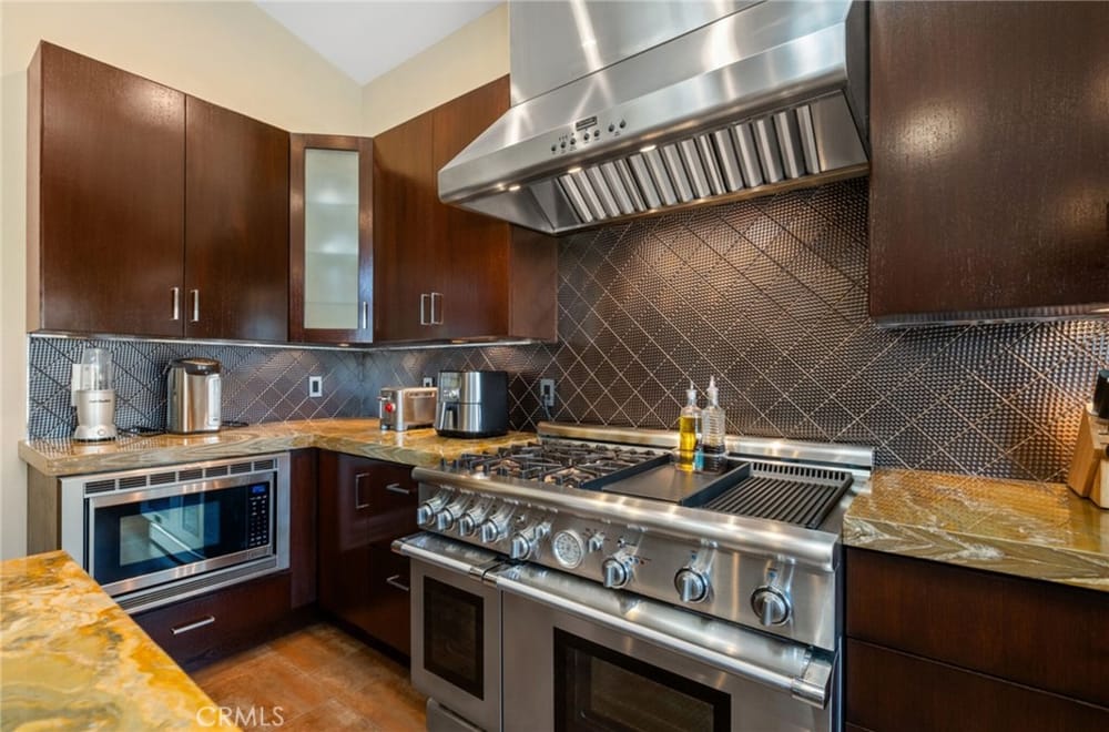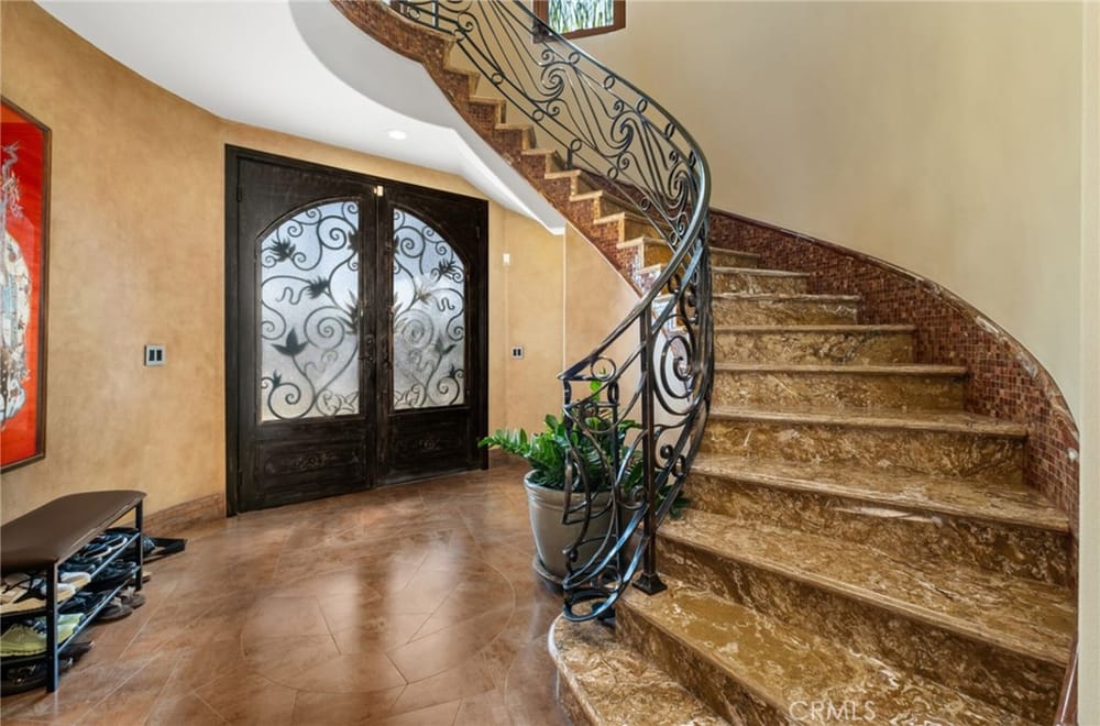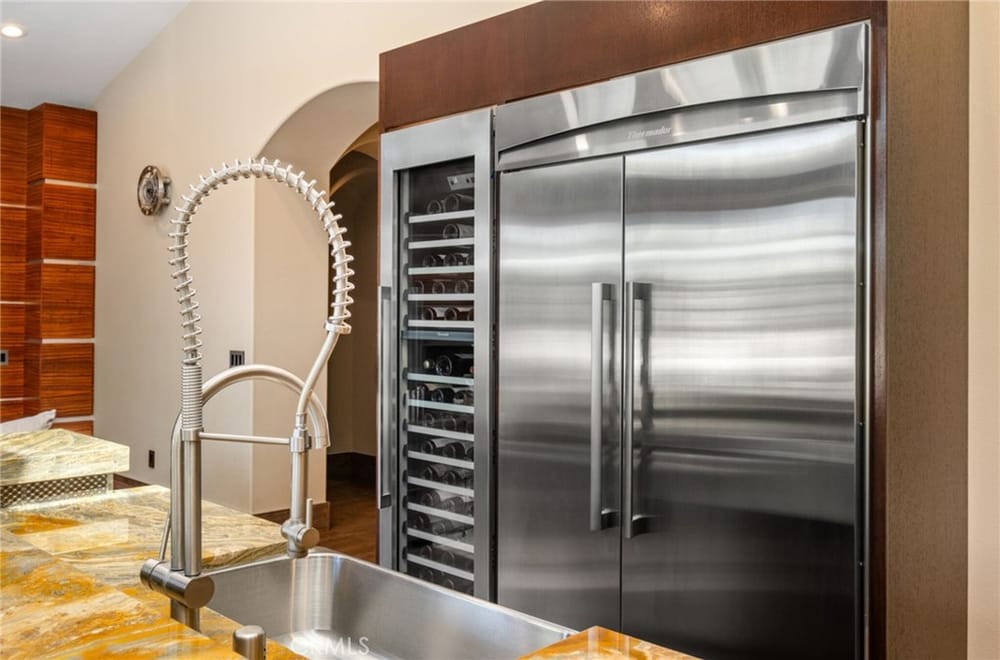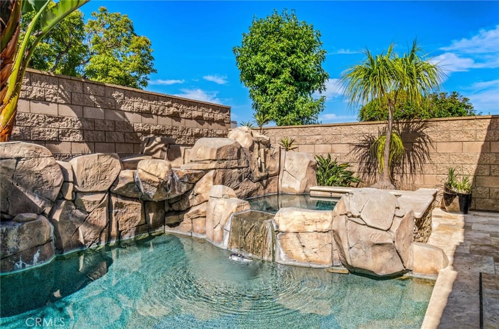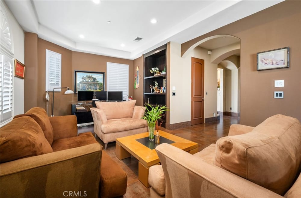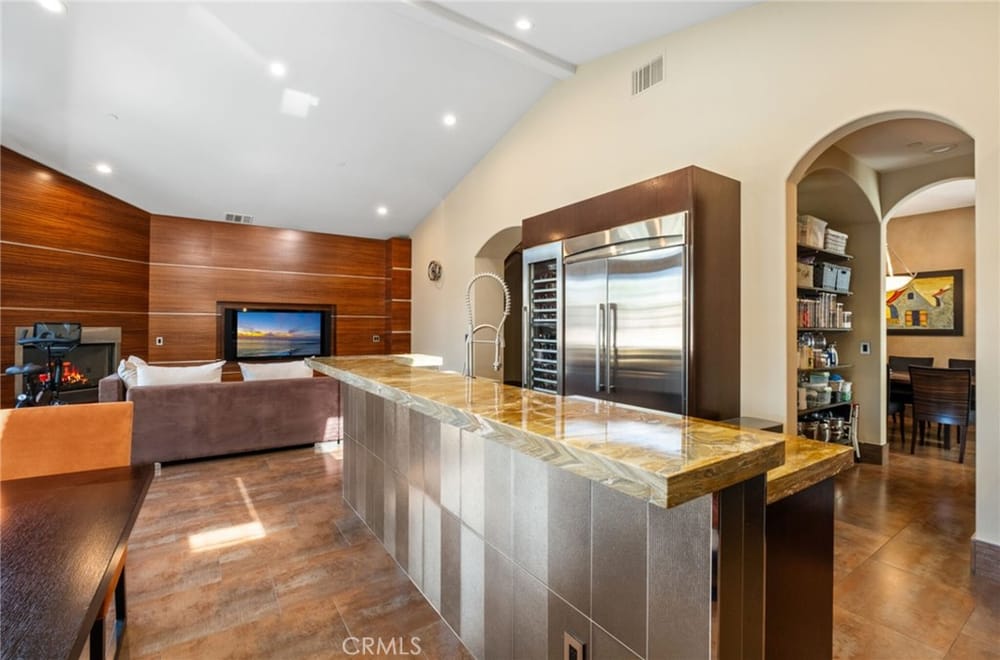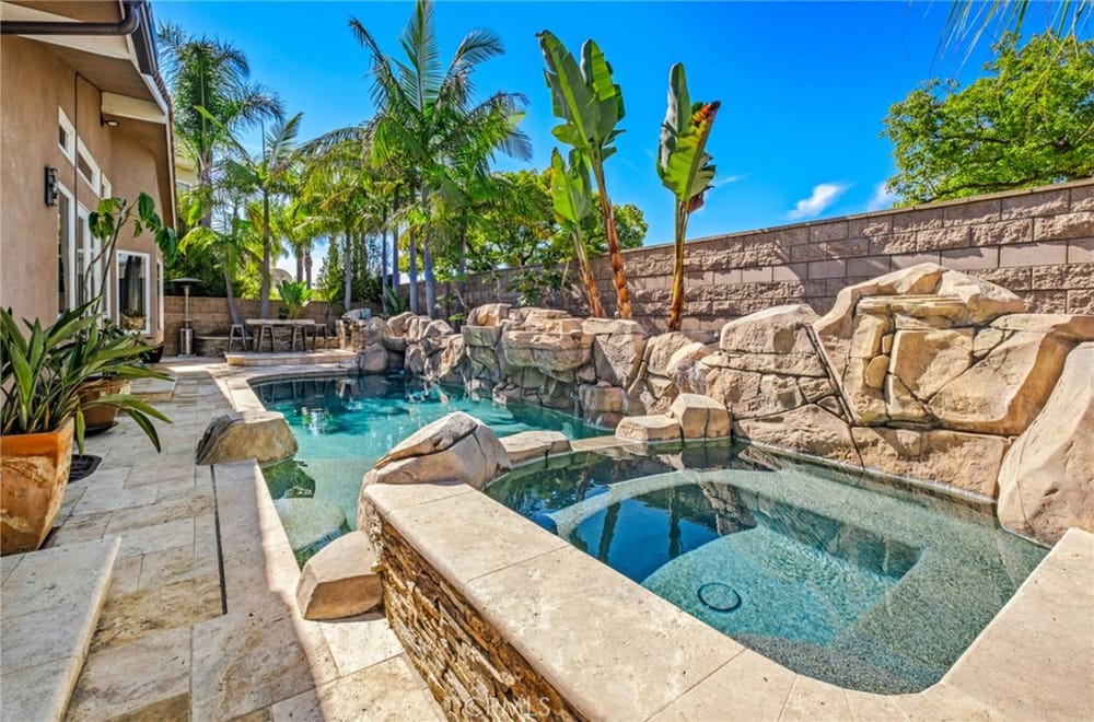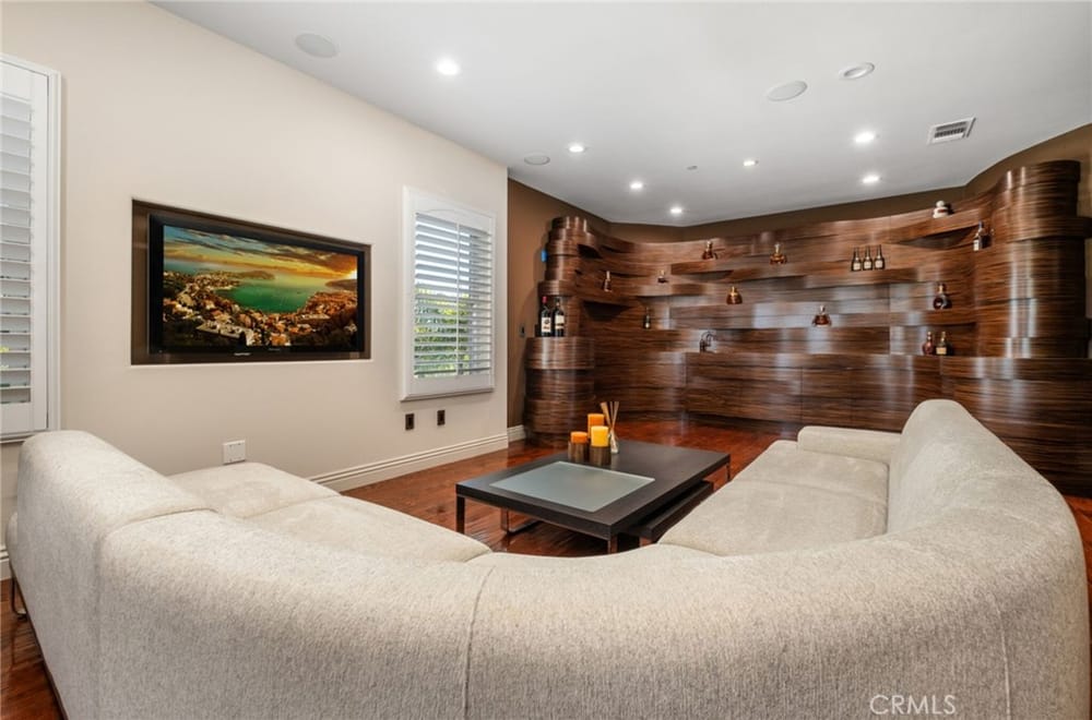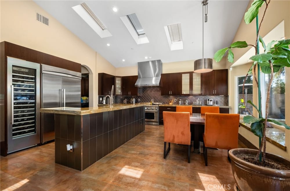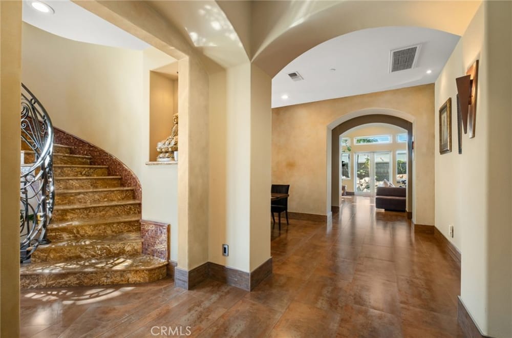 Discover an unparalleled living experience in this one-of-a-kind palatial estate designed for multi-generational living. Nestled at the end of a cul-de-sac, less than 4 miles from the beach, this custom-built masterpiece is one of only five that were built in this exclusive enclave. Crafted in 2006, this 4,653 SF home features 5 bedrooms, 4 full baths, 2 half baths (one primary suite up & one down...), and a remarkable 2,850 SF subterranean 10-car garage with an elevator to the 2nd & 3rd floors. The finest materials & impeccable craftsmanship used in the construction of this magnificent home boasting sophisticated architectural details & attention to detail given to every square inch, including extensive use of exotic hardwoods, natural stone, coffered ceilings, arched passages, smooth plaster walls, solid wood palladium doors, LED recessed lighting, designer fixtures, mosaic tile inlays, dual-pane windows, plantation shutters, stone wainscoting, 2 fireplaces, dual-zone A/C, jetted tubs, and walk-in closet organizers. The impressive exterior features include stacked stone siding, Travertine walkways, tropical landscaping, and lighting. Enter through custom solid wood & wrought iron double entry doors to a grand rotunda foyer with a dramatic sweeping stone & wrought iron staircase. The main level includes a versatile formal living room/office/bedroom. The open-concept great-room with soaring ceilings & skylights incorporates the family room w/fireplace, a spacious breakfast room w/a bay window, and a gourmet Chef’s dream kitchen with a large center island w/wrap-around seating, gorgeous granite countertops, metal tile backsplash, custom cabinetry, and Thermador professional-grade appliances, including an 80+ bottle wine fridge. A butler’s pantry is situated between kitchen & banquet-sized formal dining room for effortless entertaining. French doors open to a resort-style backyard w/sparkling pool, spa, water features, Travertine deck areas, and a fully equipped barbecue center, perfect for unforgettable gatherings. The downstairs primary suite includes a separate retreat, lavish spa-style bathroom, fireplace, and French doors to backyard. Upstairs you'll find a large living room with wall-to-wall handcrafted hardwood wet bar that's plumbed for a future 2nd kitchen, along with 3 more bedrooms, a private balcony, jack & jill bath, half bath, and a second luxurious primary suite with a spa-style bathroom and walk-in closet. Close to award-winning schools.