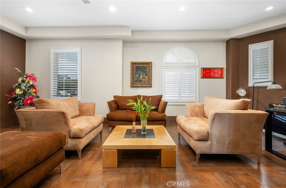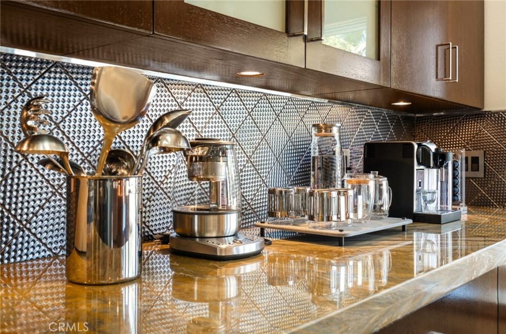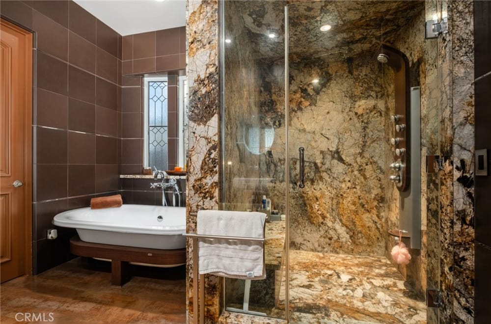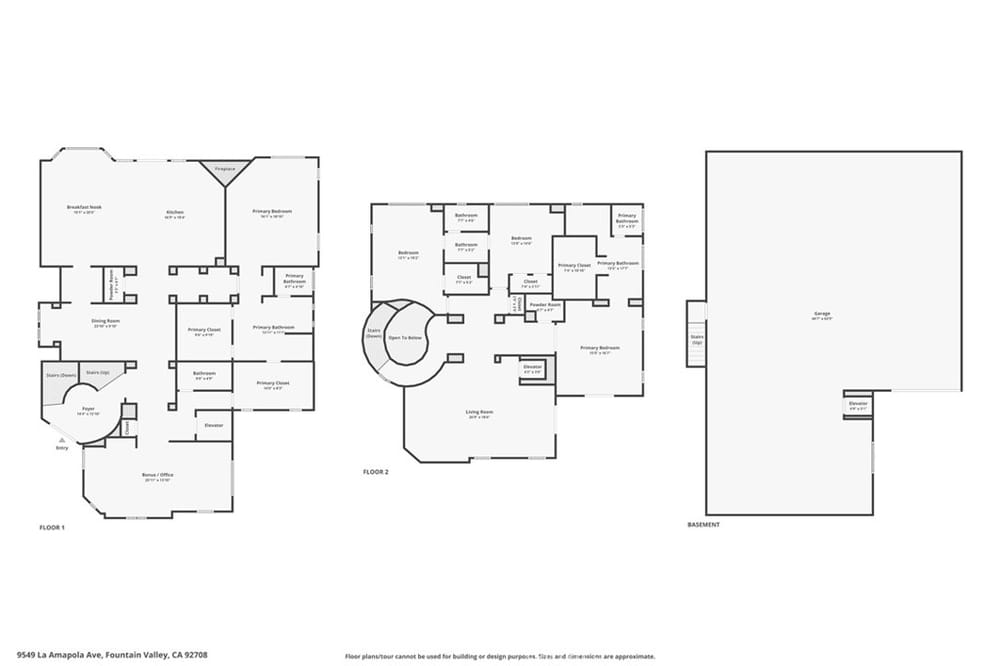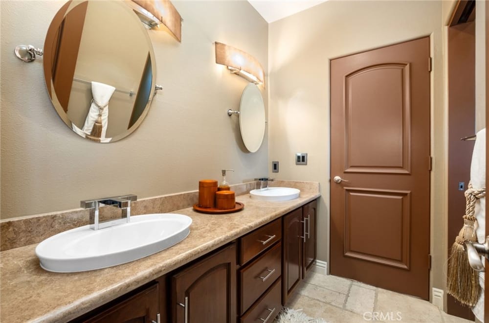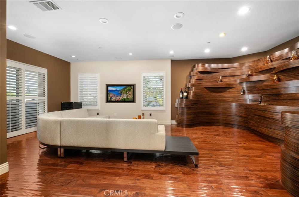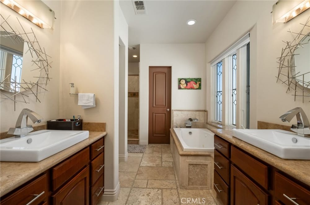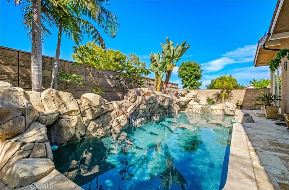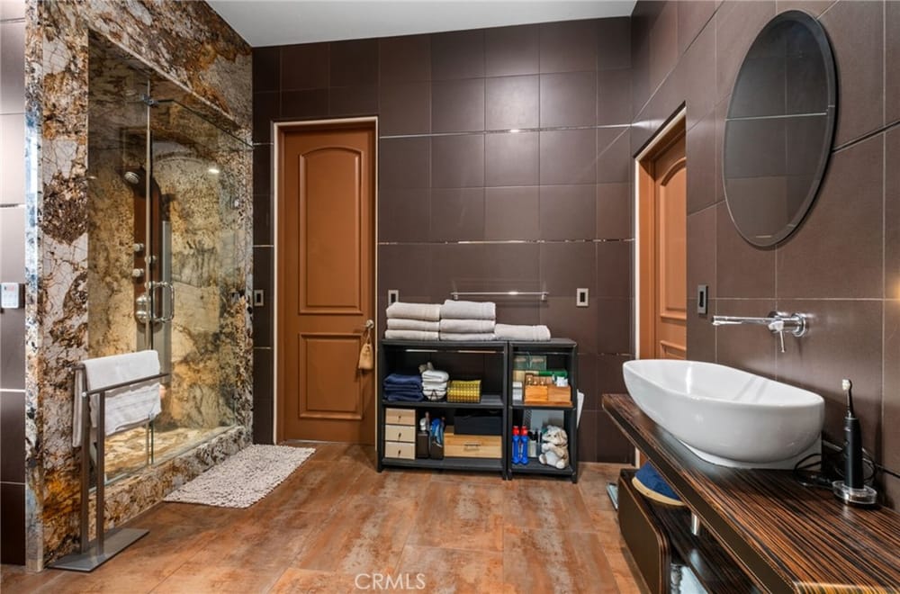 Discover an unparalleled living experience in this one-of-a-kind palatial estate designed for multi-generational living. Nestled at the end of a cul-de-sac, less than 4 miles from the beach, this custom-built masterpiece is one of only five that were built in this exclusive enclave. Crafted in 2006, this 4,653 SF home features 5 bedrooms, 4 full baths, 2 half baths (one primary suite up & one down...), and a remarkable 2,850 SF subterranean 10-car garage with an elevator to the 2nd & 3rd floors. The finest materials & impeccable craftsmanship used in the construction of this magnificent home boasting sophisticated architectural details & attention to detail given to every square inch, including extensive use of exotic hardwoods, natural stone, coffered ceilings, arched passages, smooth plaster walls, solid wood palladium doors, LED recessed lighting, designer fixtures, mosaic tile inlays, dual-pane windows, plantation shutters, stone wainscoting, 2 fireplaces, dual-zone A/C, jetted tubs, and walk-in closet organizers. The impressive exterior features include stacked stone siding, Travertine walkways, tropical landscaping, and lighting. Enter through custom solid wood & wrought iron double entry doors to a grand rotunda foyer with a dramatic sweeping stone & wrought iron staircase. The main level includes a versatile formal living room/office/bedroom. The open-concept great-room with soaring ceilings & skylights incorporates the family room w/fireplace, a spacious breakfast room w/a bay window, and a gourmet Chef’s dream kitchen with a large center island w/wrap-around seating, gorgeous granite countertops, metal tile backsplash, custom cabinetry, and Thermador professional-grade appliances, including an 80+ bottle wine fridge. A butler’s pantry is situated between kitchen & banquet-sized formal dining room for effortless entertaining. French doors open to a resort-style backyard w/sparkling pool, spa, water features, Travertine deck areas, and a fully equipped barbecue center, perfect for unforgettable gatherings. The downstairs primary suite includes a separate retreat, lavish spa-style bathroom, fireplace, and French doors to backyard. Upstairs you'll find a large living room with wall-to-wall handcrafted hardwood wet bar that's plumbed for a future 2nd kitchen, along with 3 more bedrooms, a private balcony, jack & jill bath, half bath, and a second luxurious primary suite with a spa-style bathroom and walk-in closet. Close to award-winning schools.