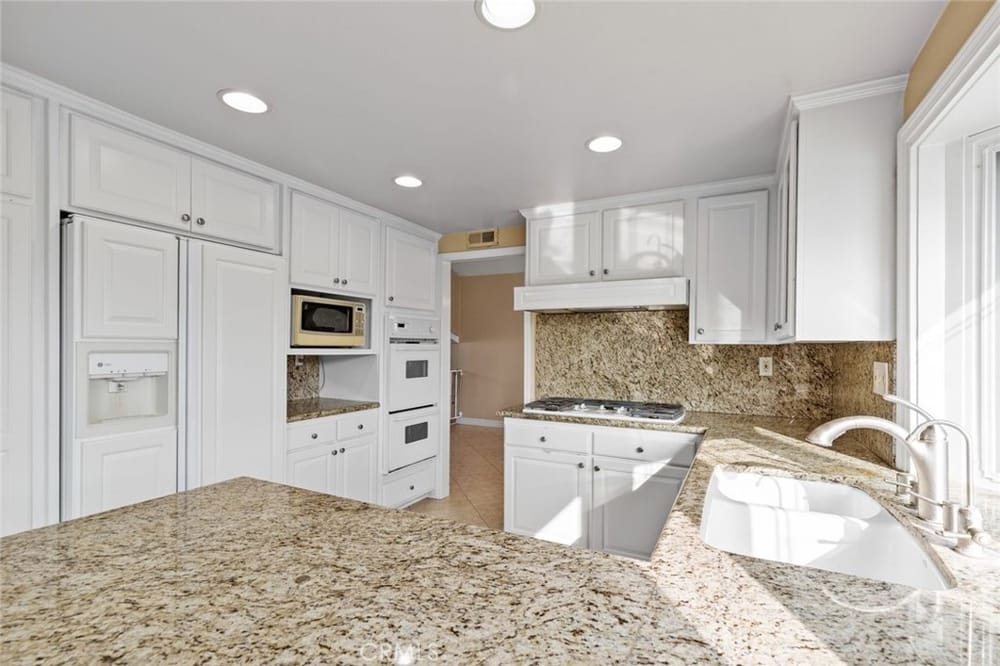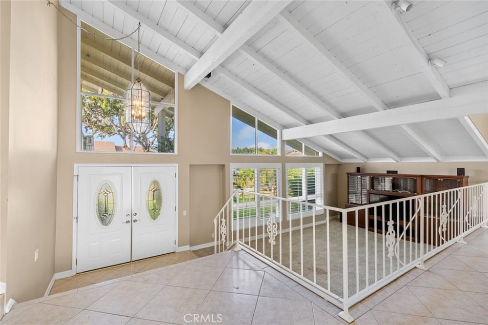 Welcome to the highly coveted Four Seasons neighborhood, where this expansive, light-filled home awaits. Offering four bedrooms and three bathrooms, the split-level open floor plan is bathed in natural light ,accentuated by vaulted wood-beamed ceilings that add a touch of rustic elegance. Thoughtfully upgraded, the home features dual-paned windows ,an updated kitchen and bathrooms, crown molding, ...air conditioning, and charming plantation shutters. The kitchen is a chef’s delight, boasting white cabinetry, granite countertops with a matching backsplash, a 5-burner cooktop, double ovens, and a cozy dining nook. Perfect for hosting guests ,the downstairs bedroom and bath offer privacy and comfort. Just off the kitchen, a deck overlooks the beautifully landscaped backyard, which is an entertainer’s paradise. Enjoy the sparkling pebble-tech pool, built-in stainless steel BBQ, covered patio, and lush greenery. Additional highlights include a spacious three-car garage with ample storage and laundry hookups, all seton a generous 8,500 square-foot lot. Located just steps from a neighborhood park and award-winning schools, this home also offers easy access to shopping, dining, and the 405 freeway, making it the ideal blend of luxury and convenience.