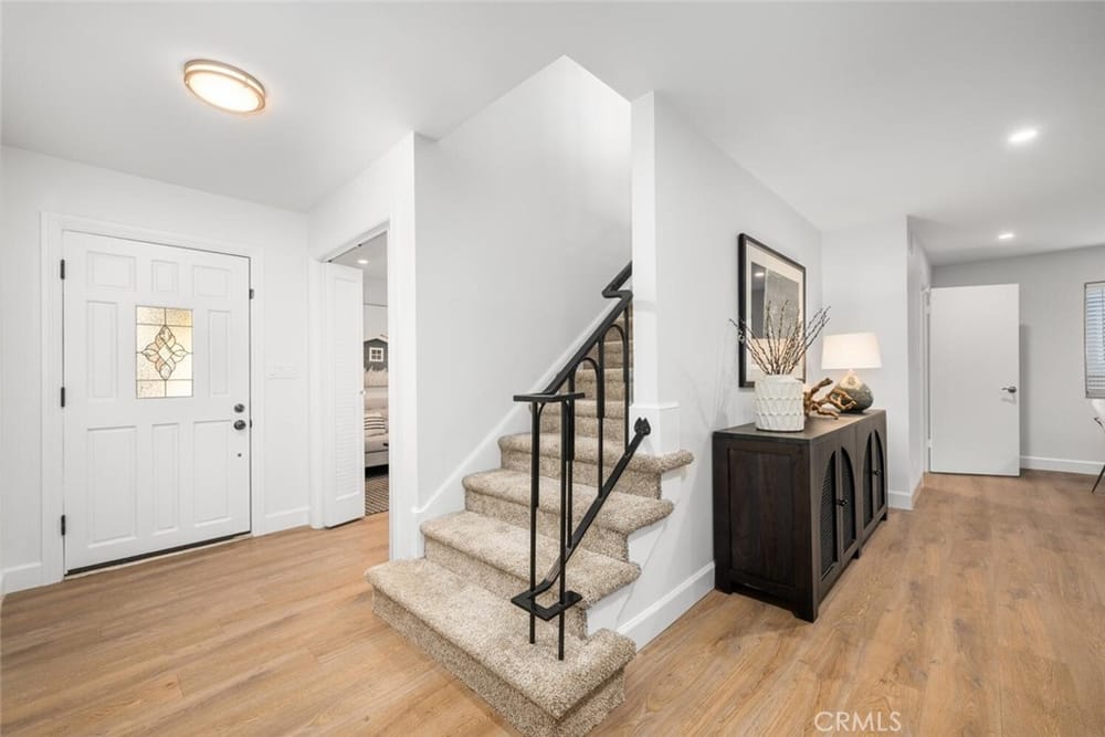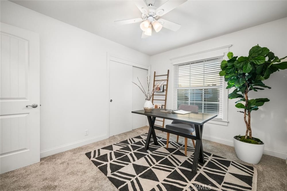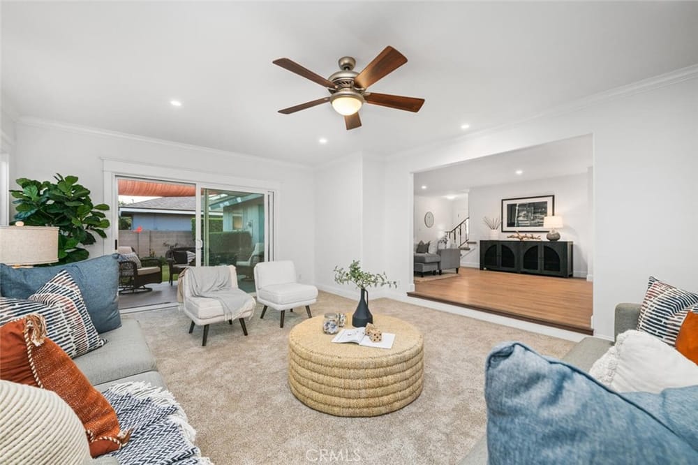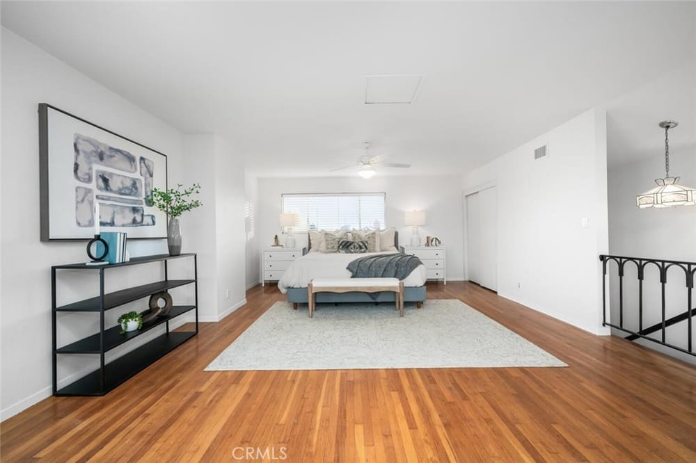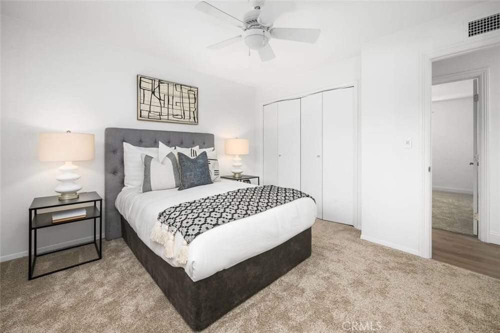 Welcome to this charming FAIRWAY PARK home in the heart of Cypress ideally situated on a quiet interior cul-de-sac. This well-maintained property features 4 bedrooms, 3 full bathrooms, and nearly 2,300 square feet of inviting living space, offering plenty of room for family living and entertaining. The spacious, open floor plan is filled with natural light, creating a warm and welcoming ambiance ...throughout. A beautiful fireplace adds a touch of coziness to the living area, perfect for unwinding after a long day. The galley kitchen offers a walk-in pantry, ample counter space, and easy access to the attached garage for convenience. With two primary suites, there’s flexibility to suit your needs, including the option to convert the upstairs suite into a bonus room or home office – complete with a large private balcony, perfect for relaxing or enjoying the outdoors. Additional amenities include fresh interior and exterior paint, new carpet, stylish vinyl wood flooring, dual-pane windows, recessed lighting, and ceiling fans. Step outside to a peaceful backyard retreat, featuring a cozy deck, nice landscaping, and a mature lemon tree, all surrounded by block wall fencing for added privacy. Located just a short walk from Lexington Park, and close to top-rated schools, shopping, dining, and major freeways. Schedule your private showing today and discover everything this special home has to offer!
