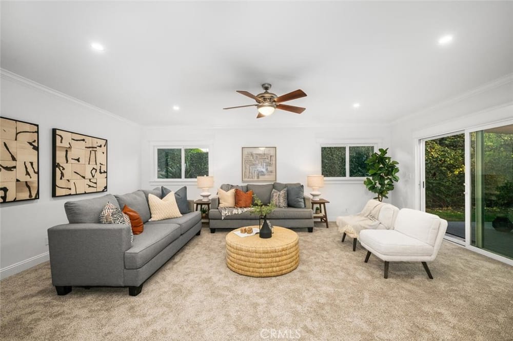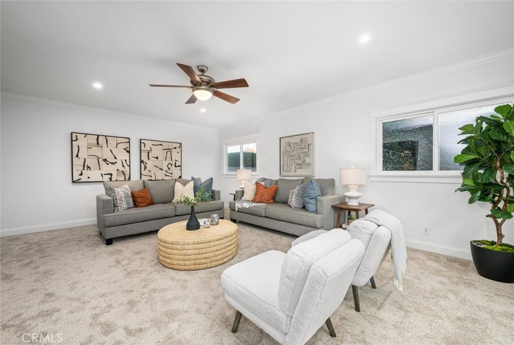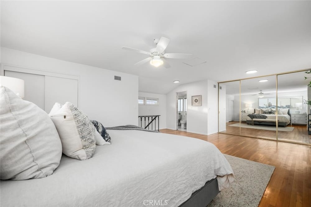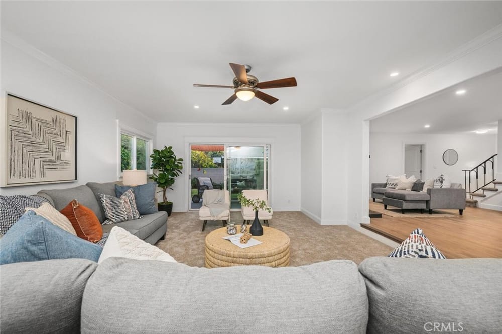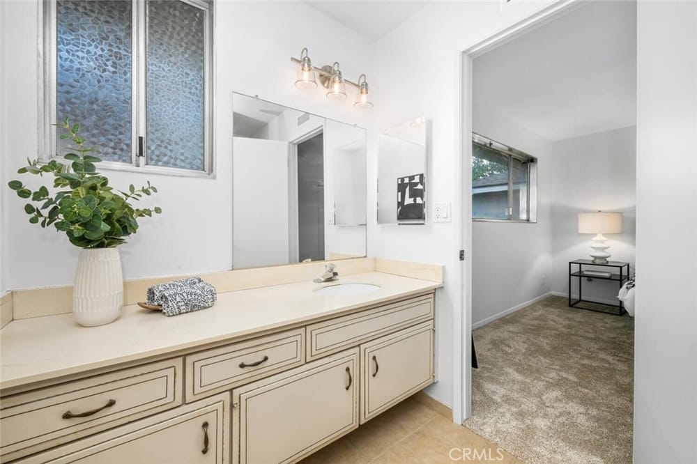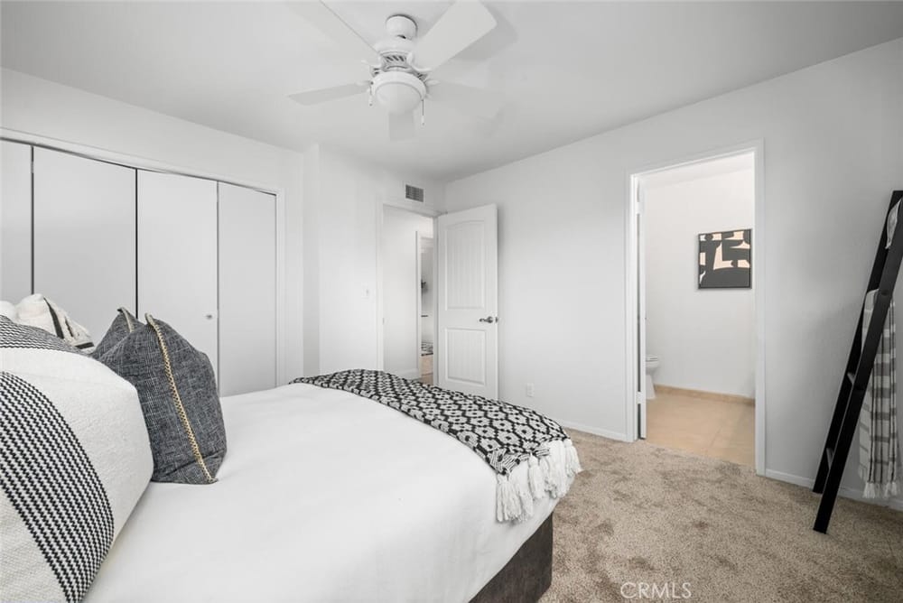 Welcome to this charming FAIRWAY PARK home in the heart of Cypress ideally situated on a quiet interior cul-de-sac. This well-maintained property features 4 bedrooms, 3 full bathrooms, and nearly 2,300 square feet of inviting living space, offering plenty of room for family living and entertaining. The spacious, open floor plan is filled with natural light, creating a warm and welcoming ambiance ...throughout. A beautiful fireplace adds a touch of coziness to the living area, perfect for unwinding after a long day. The galley kitchen offers a walk-in pantry, ample counter space, and easy access to the attached garage for convenience. With two primary suites, there’s flexibility to suit your needs, including the option to convert the upstairs suite into a bonus room or home office – complete with a large private balcony, perfect for relaxing or enjoying the outdoors. Additional amenities include fresh interior and exterior paint, new carpet, stylish vinyl wood flooring, dual-pane windows, recessed lighting, and ceiling fans. Step outside to a peaceful backyard retreat, featuring a cozy deck, nice landscaping, and a mature lemon tree, all surrounded by block wall fencing for added privacy. Located just a short walk from Lexington Park, and close to top-rated schools, shopping, dining, and major freeways. Schedule your private showing today and discover everything this special home has to offer!